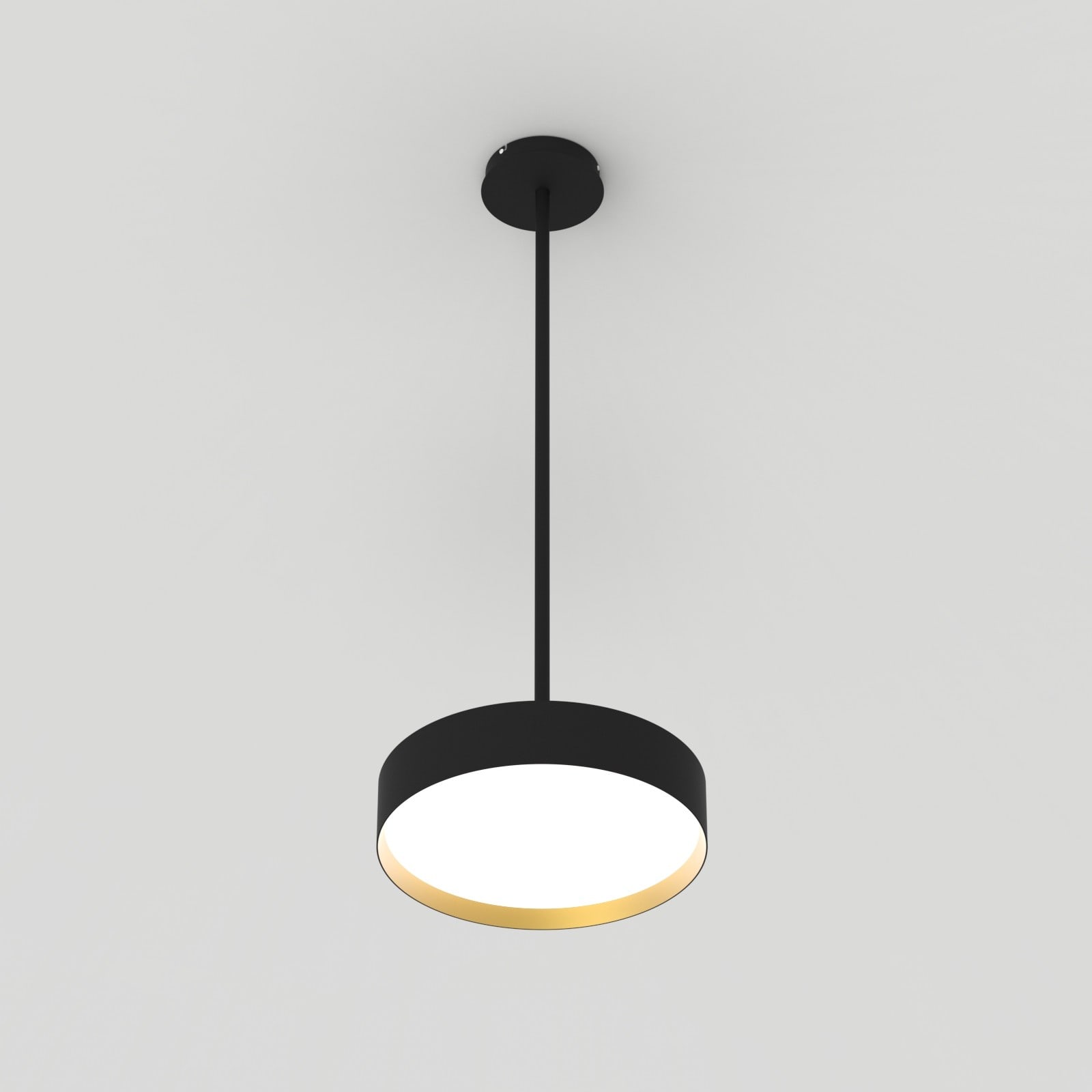 Luminaire LED de grande qualité avec boîtier de luminaire rondé au design plat en aluminium extrudé avec surface thermolaquée avec boîtier en revêtu par poudre RAL9005 noir fine matte et anneau décoratif 'glaring gold' pour montage en suspension rigide. Installation par Suspension rigide 'Pende' d'un diamètre de 20 mm, d'une longueur de 1000 mm, en supplément de 2000 mm commandable, raccourcissable individuellement et avec alimentation transparente guidée intérieurement. anneau décoratif 'glaring gold'. 'Pende' en couleur de boîtier, revêtement en poudre en, incl. suspension rigide 1000 mm en noir, individuellement raccourcissablepatère de plafond en noir avec 177x36 mm (d.xh) incl.. Diffuseur en PMMA microprismatique pour une luminance réduite (LRA). Raccordement électrique par 5 pôles utilisés, Luminaire équipé d’une technologie LED innovante avec une efficacité de 85 lm par W et une flux lumineux sortant de 2381 lm lm pour 28 W, en température de couleur 4000 K. Nombre d'adresses DALI : 1. Convertisseur DALI pour gradation, Evaluation de l'éblouissement selon la classification selon DIN EN 12464-1.2021-11 avec UGR < 22, ’Melanopic Ratio’ = (0,739), Indice de rendu des couleurs (IRC) > 90, tolérance chromatique étroite MacAdam 3, Groupe de risque RG0 selon norme IEC 62471, durée de vie nominale > 60.000 h [selon le décret de l’UE], classe énergétique (EEI). Indice de protection IP50, classe de protection I. Sur demande, également en version éclairage de secours avec batterie de 3h ou dans la version avec capteur de mouvement et de luminosité contrôlable/programmable, Casambi également sur demande. Des télécommandes sont disponibles comme accessoires. L’éclairage d’urgence et le capteur ne peuvent pas être combinés. Option de commutateur : C, source lumineuse remplaçable par le fabricant, dispositif de commande remplaçable par un professionnel autorisé, Dimensions DMxH : 0420x091 mm, hauteur totale du boîtier de 110 mm et hauteur visible de 91 mm, poids : 4,3 kg