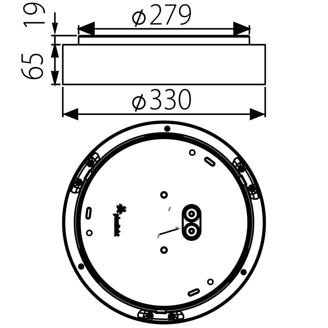 Luminaire LED de grande qualité avec boîtier de luminaire rond au design plat en aluminium extrudé avec surface thermolaquée, et pour éclairage direct. Installation par fixation murale incl.. Diffuseur direct en PMMA satiné pour un éclairage homogène. Raccordement électrique par 3 pôles utilisés, Luminaire équipé d’une technologie LED innovante avec une efficacité de 118 lm par W et une flux lumineux sortant de 2185 lm lm pour 18,5 W, en température de couleur 3000 K. Nombre d''adresses DALI : 1. Convertisseur DALI pour gradation , Evaluation de l''éblouissement selon la classification selon DIN EN 12464-1.2021-11 avec UGR < 25, ’Melanopic Ratio’ = [0,57], Indice de rendu des couleurs (IRC) > 90, tolérance chromatique étroite MacAdam 3, Groupe de risque RG0 selon norme IEC 62471, durée de vie nominale > 60.000 h [selon le décret de l’UE], classe énergétique (EEI) . Indice de protection IP50, résistance aux chocs IK07 selon norme IEC 62262:2012, classe de protection I. Sur demande, également en version éclairage de secours avec batterie de 3h ou dans la version avec capteur de mouvement et de luminosité contrôlable/programmable, Casambi également sur demande. Des télécommandes sont disponibles comme accessoires. L'éclairage d'urgence et le capteur ne peuvent pas être combinés. Option de commutateur : C, source lumineuse remplaçable par le fabricant, dispositif de commande remplaçable par un professionnel autorisé, Dimensions DMxH : 0330x065 mm, hauteur totale du boîtier de 84 mm, déport du mur (profondeur) = 19 mm, poids : 2.0 kg