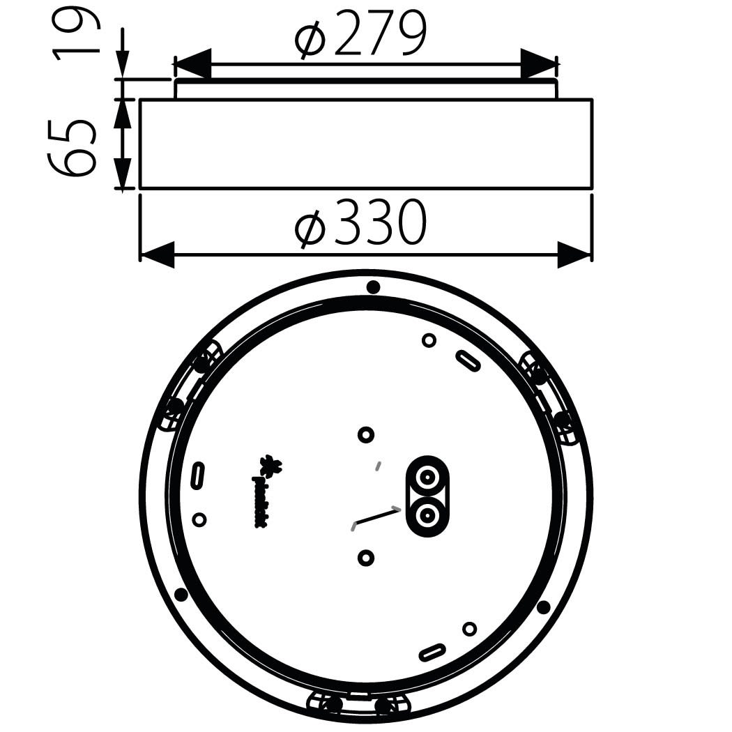 Luminaire LED de grande qualité avec boîtier de luminaire rond au design plat en aluminium extrudé avec surface thermolaquée, et pour éclairage direct. Installation par fixation murale incl.. Diffuseur direct en PMMA satiné pour un éclairage homogène. Raccordement électrique par 3 pôles utilisés, Luminaire équipé d’une technologie LED innovante avec une efficacité de 103 lm par W et une flux lumineux sortant de 1910 lm lm pour 18,5 W, en température de couleur 3000 K. Nombre d''adresses DALI : 1. Convertisseur DALI pour gradation , Evaluation de l''éblouissement selon la classification selon DIN EN 12464-1.2021-11 avec UGR < 25, ’Melanopic Ratio’ = [0,57], Indice de rendu des couleurs (IRC) > 90, tolérance chromatique étroite MacAdam 3, Groupe de risque RG0 selon norme IEC 62471, durée de vie nominale > 60.000 h [selon le décret de l’UE], classe énergétique (EEI) . Indice de protection IP50, résistance aux chocs IK07 selon norme IEC 62262:2012, classe de protection I. Sur demande, également en version éclairage de secours avec batterie de 3h ou dans la version avec capteur de mouvement et de luminosité contrôlable/programmable, Casambi également sur demande. Des télécommandes sont disponibles comme accessoires. L'éclairage d'urgence et le capteur ne peuvent pas être combinés. Option de commutateur : C, source lumineuse remplaçable par le fabricant, dispositif de commande remplaçable par un professionnel autorisé, Dimensions DMxH : 0330x065 mm, hauteur totale du boîtier de 84 mm, déport du mur (profondeur) = 19 mm, poids : 2.0 kg