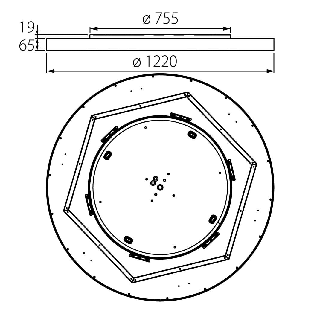 Luminaire LED de grande qualité avec boîtier de luminaire rond au design plat en aluminium extrudé avec surface thermolaquéeen blanc ’RAL9016’, structure fine mate, pour montage en saillie, et pour éclairage direct. Installation par le matériel de montage fourni sur CLICK&PLAY-canopée. . Diffuseur en PMMA microprismatique pour une luminance réduite (LRA). Raccordement électrique par 5 pôles utilisés, Luminaire équipé d’une technologie LED innovante avec une efficacité de 115 lm par W et une flux lumineux sortant de 26227 lm lm pour 229 W, en température de couleur 3000 K. Nombre d''adresses DALI : 3. Convertisseur DALI pour gradation , Evaluation de l''éblouissement selon la classification selon DIN EN 12464-1.2021-11 avec UGR < 22, ’Melanopic Ratio’ = [0,57], Indice de rendu des couleurs (IRC) > 90, tolérance chromatique étroite MacAdam 3, Groupe de risque RG0 selon norme IEC 62471, durée de vie nominale > 60.000 h [selon le décret de l’UE], classe énergétique (EEI) . Indice de protection IP50, résistance aux chocs IK07 selon norme IEC 62262:2012, classe de protection I. Sur demande, également en version avec capteur de mouvement et de luminosité contrôlable/programmable, Casambi également sur demande. Des télécommandes sont disponibles comme accessoires. Option de commutateur : C, source lumineuse remplaçable par le fabricant, dispositif de commande remplaçable par un professionnel autorisé, Dimensions DMxH : 1220x065 mm, hauteur totale du boîtier de 84 mm, joint creux de 19 mm, poids : 25.2 kg