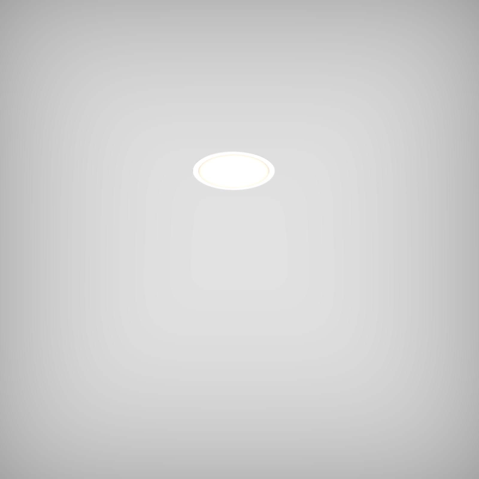 Luminaire LED de grande qualité avec boîtier de luminaire rond au design plat avec collerette ronde élégante en coloris blanc ’RAL9016’, structure fine mate, en aluminium extrudé avec surface thermolaquée, pour montage encastré au ras du plafond de 2 à 52 mm d’épaisseur, et pour éclairage direct. Installation par avec plaques de montage spéciales pour faciliter l’encastrement. . Diffuseur en PMMA microprismatique pour une luminance réduite (LRA). Raccordement électrique par 5 pôles utilisés, Luminaire équipé d’une technologie LED innovante avec une efficacité de 92 lm par W et une flux lumineux sortant de 1602 lm lm pour 17,5 W, en température de couleur 4000 K. Pour maximiser la sortie en lumens, un boost d'efficacité du réflecteur spécialement conçu est disponible en tant qu'accessoire à monter ultérieurement : en l'utilisant (en option), le flux lumineux passe à 1782 lm, l'efficacité peut être augmentée à 102 lm/W . Nombre d''adresses DALI : 1. Convertisseur DALI pour gradation , Evaluation de l''éblouissement selon la classification selon DIN EN 12464-1.2021-11 avec UGR < 25, ’Melanopic Ratio’ = [0,739], Indice de rendu des couleurs (IRC) > 90, tolérance chromatique étroite MacAdam 3, Groupe de risque RG0 selon norme IEC 62471, durée de vie nominale > 60.000 h [selon le décret de l’UE], classe énergétique (EEI) . Indice de protection IP20, résistance aux chocs IK07 selon norme IEC 62262:2012, classe de protection I. Sur demande, également en version avec capteur de mouvement et de luminosité contrôlable/programmable, Casambi également sur demande. Des télécommandes sont disponibles comme accessoires. Option de commutateur : C, source lumineuse remplaçable par un professionnel autorisé, dispositif de commande remplaçable par un professionnel autorisé, Dimensions DMxH : 0250x092 mmDécoupe DMxH : 238 - 243x100 mm, poids : 2.0 kg