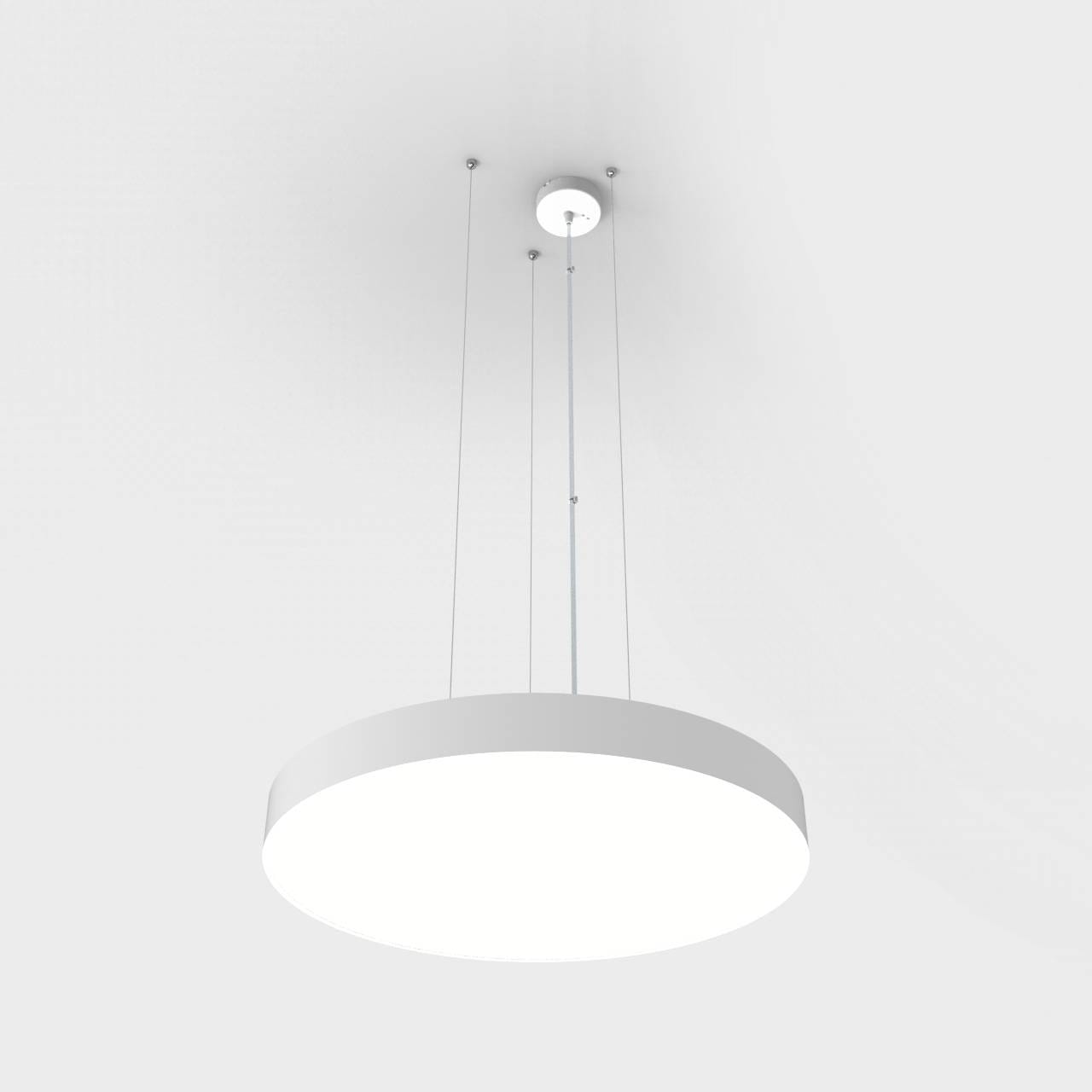 Luminaire LED de grande qualité avec boîtier de luminaire rond au design plat en aluminium extrudé avec surface thermolaquéeen blanc ’RAL9016’, structure fine mate, pour montage en suspension, et pour éclairage direct. Installation par 3 filins de suspension 1500 mm avec tendeurs rapides, avec réglage de la longueur. alimentation transparent 1750 mm avec patère blanche en saillie 100x36 mm (d.xh) incl.. Diffuseur direct en PMMA satiné pour un éclairage homogène. Raccordement électrique par 3 pôles utilisés, Luminaire équipé d’une technologie LED innovante avec une efficacité de 130 lm par W et une flux lumineux sortant de 5210 lm lm pour 40 W, en température de couleur 3000 K. Nombre d''adresses DALI : 1. Convertisseur DALI pour gradation , Evaluation de l''éblouissement selon la classification selon DIN EN 12464-1.2021-11 avec UGR < 25, ’Melanopic Ratio’ = [0,57], Indice de rendu des couleurs (IRC) > 90, tolérance chromatique étroite MacAdam 3, Groupe de risque RG0 selon norme IEC 62471, durée de vie nominale > 60.000 h [selon le décret de l’UE], classe énergétique (EEI) . Indice de protection IP50, résistance aux chocs IK07 selon norme IEC 62262:2012, classe de protection I. Sur demande, également en version éclairage de secours avec batterie de 3h ou dans la version avec capteur de mouvement et de luminosité contrôlable/programmable, Casambi également sur demande. Des télécommandes sont disponibles comme accessoires. L'éclairage d'urgence et le capteur ne peuvent pas être combinés. Des câbles design de différentes longueurs et couleurs sont disponibles en option pour l’alimentation, Option de commutateur : C, source lumineuse remplaçable par le fabricant, dispositif de commande remplaçable par un professionnel autorisé, Dimensions DMxH : 0620x065 mm, hauteur totale du boîtier de 84 mm et hauteur visible de 65 mm, poids : 4.9 kg