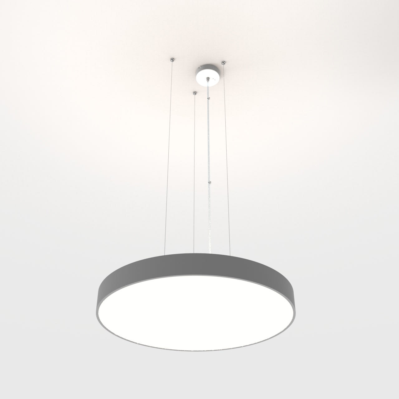 Luminaire LED de grande qualité avec boîtier de luminaire rond au design plat en aluminium extrudé avec surface thermolaquéeen argent ’RAL9006’, structure fine mate, pour montage en suspension, et pour éclairage direct/indirect. Installation par 3 filins de suspension 1500 mm avec tendeurs rapides, avec réglage de la longueur. alimentation transparent 1750 mm avec patère blanche en saillie 100x36 mm (d.xh) incl.. Diffuseurs direct et indirect en polycarbonate satiné pour un éclairage homogène. Raccordement électrique par 3 pôles utilisés, Luminaire équipé d’une technologie LED innovante avec une efficacité de 132 lm par W et une flux lumineux sortant de 10031 lm lm pour 76 W, en température de couleur 4000 K. Nombre d''adresses DALI : 2. Convertisseur DALI pour gradation , Evaluation de l''éblouissement selon la classification selon DIN EN 12464-1.2021-11 avec UGR < 22, ’Melanopic Ratio’ = [0,739], Indice de rendu des couleurs (IRC) > 90, tolérance chromatique étroite MacAdam 3, Groupe de risque RG0 selon norme IEC 62471, durée de vie nominale > 60.000 h [selon le décret de l’UE], classe énergétique (EEI) . Indice de protection IP50, résistance aux chocs IK07 selon norme IEC 62262:2012, classe de protection I. Sur demande, également en version avec capteur de mouvement et de luminosité contrôlable/programmable, Casambi également sur demande. Des télécommandes sont disponibles comme accessoires. Des câbles design de différentes longueurs et couleurs sont disponibles en option pour l’alimentation, Option de commutateur : C, source lumineuse remplaçable par le fabricant, dispositif de commande remplaçable par un professionnel autorisé, Dimensions DMxH : 0620x065 mm, hauteur totale du boîtier de 84 mm et hauteur visible de 65 mm, poids : 5.7 kg