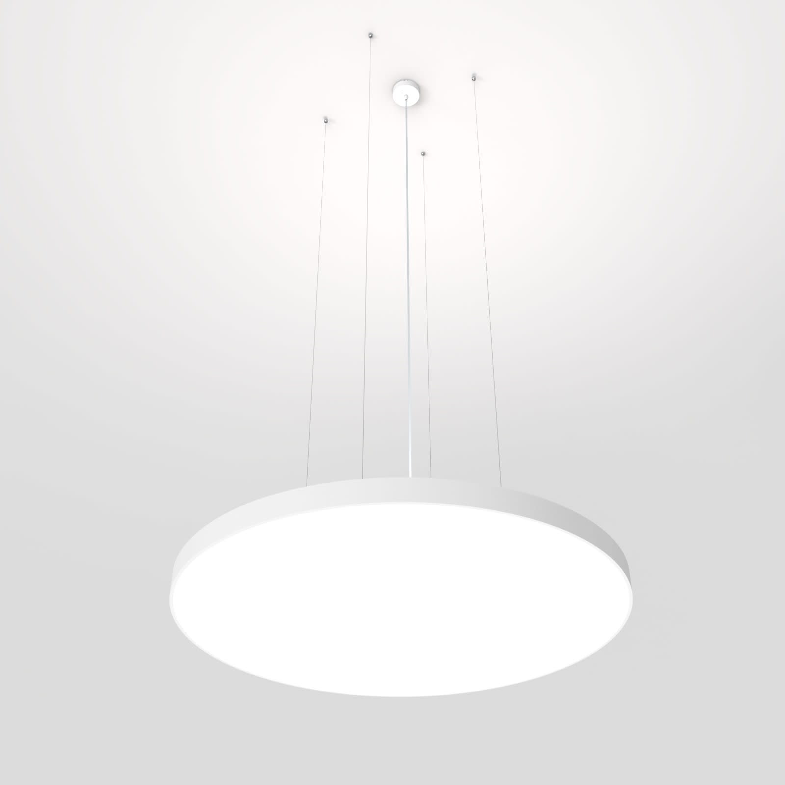 Luminaire LED de grande qualité avec boîtier de luminaire rond au design plat en aluminium extrudé avec surface thermolaquéeen blanc ’RAL9016’, structure fine mate, pour montage en suspension, et pour éclairage direct/indirect. Installation par 4 filins de suspension 1500 mm avec tendeurs rapides, avec réglage de la longueur. alimentation transparent 1750 mm avec patère blanche en saillie 100x36 mm (d.xh) incl.. Diffuseurs direct et indirect en polycarbonate satiné pour un éclairage homogène. Raccordement électrique par 5 pôles utilisés, Luminaire équipé d’une technologie LED innovante avec une efficacité de 126 lm par W et une flux lumineux sortant de 38018 lm lm pour 301 W, en température de couleur 3000 K. Nombre d''adresses DALI : 4. Convertisseur DALI pour gradation , Evaluation de l''éblouissement selon la classification selon DIN EN 12464-1.2021-11 avec UGR < 25, ’Melanopic Ratio’ = [0,57], Indice de rendu des couleurs (IRC) > 90, tolérance chromatique étroite MacAdam 3, Groupe de risque RG0 selon norme IEC 62471, durée de vie nominale > 60.000 h [selon le décret de l’UE], classe énergétique (EEI) . Indice de protection IP50, résistance aux chocs IK07 selon norme IEC 62262:2012, classe de protection I. Sur demande, également en version avec capteur de mouvement et de luminosité contrôlable/programmable, Casambi également sur demande. Des télécommandes sont disponibles comme accessoires. Des câbles design de différentes longueurs et couleurs sont disponibles en option pour l’alimentation, Option de commutateur : C, source lumineuse remplaçable par le fabricant, dispositif de commande remplaçable par un professionnel autorisé, Dimensions DMxH : 1220x065 mm, hauteur totale du boîtier de 84 mm et hauteur visible de 65 mm, poids : 26.8 kg