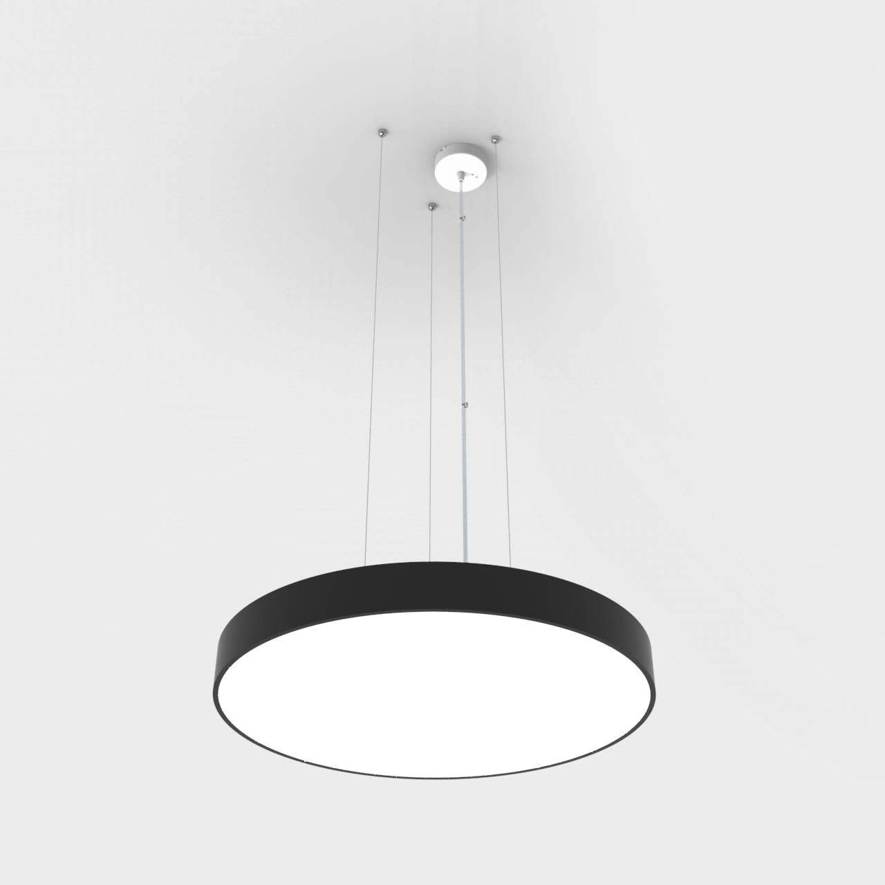 Luminaire LED de grande qualité avec boîtier de luminaire rond au design plat en aluminium extrudé avec surface thermolaquéeen noir ’RAL9005’, structure fine mate, pour montage en suspension, et pour éclairage direct. Installation par 3 filins de suspension 1500 mm avec tendeurs rapides, avec réglage de la longueur. alimentation transparent 1750 mm avec patère blanche en saillie 100x36 mm (d.xh) incl.. Diffuseur en PMMA microprismatique pour une luminance réduite (LRA). Raccordement électrique par 3 pôles utilisés, Luminaire équipé d’une technologie LED innovante avec une efficacité de 121 lm par W et une flux lumineux sortant de 4823 lm lm pour 40 W, en température de couleur 4000 K. Nombre d''adresses DALI : 1. Convertisseur DALI pour gradation , Evaluation de l''éblouissement selon la classification selon DIN EN 12464-1.2021-11 avec UGR < 22, ’Melanopic Ratio’ = [0,739], Indice de rendu des couleurs (IRC) > 90, tolérance chromatique étroite MacAdam 3, Groupe de risque RG0 selon norme IEC 62471, durée de vie nominale > 60.000 h [selon le décret de l’UE], classe énergétique (EEI) . Indice de protection IP50, résistance aux chocs IK07 selon norme IEC 62262:2012, classe de protection I. Sur demande, également en version éclairage de secours avec batterie de 3h ou dans la version avec capteur de mouvement et de luminosité contrôlable/programmable, Casambi également sur demande. Des télécommandes sont disponibles comme accessoires. L'éclairage d'urgence et le capteur ne peuvent pas être combinés. Des câbles design de différentes longueurs et couleurs sont disponibles en option pour l’alimentation, Option de commutateur : C, source lumineuse remplaçable par le fabricant, dispositif de commande remplaçable par un professionnel autorisé, Dimensions DMxH : 0620x065 mm, hauteur totale du boîtier de 84 mm et hauteur visible de 65 mm, poids : 4.9 kg