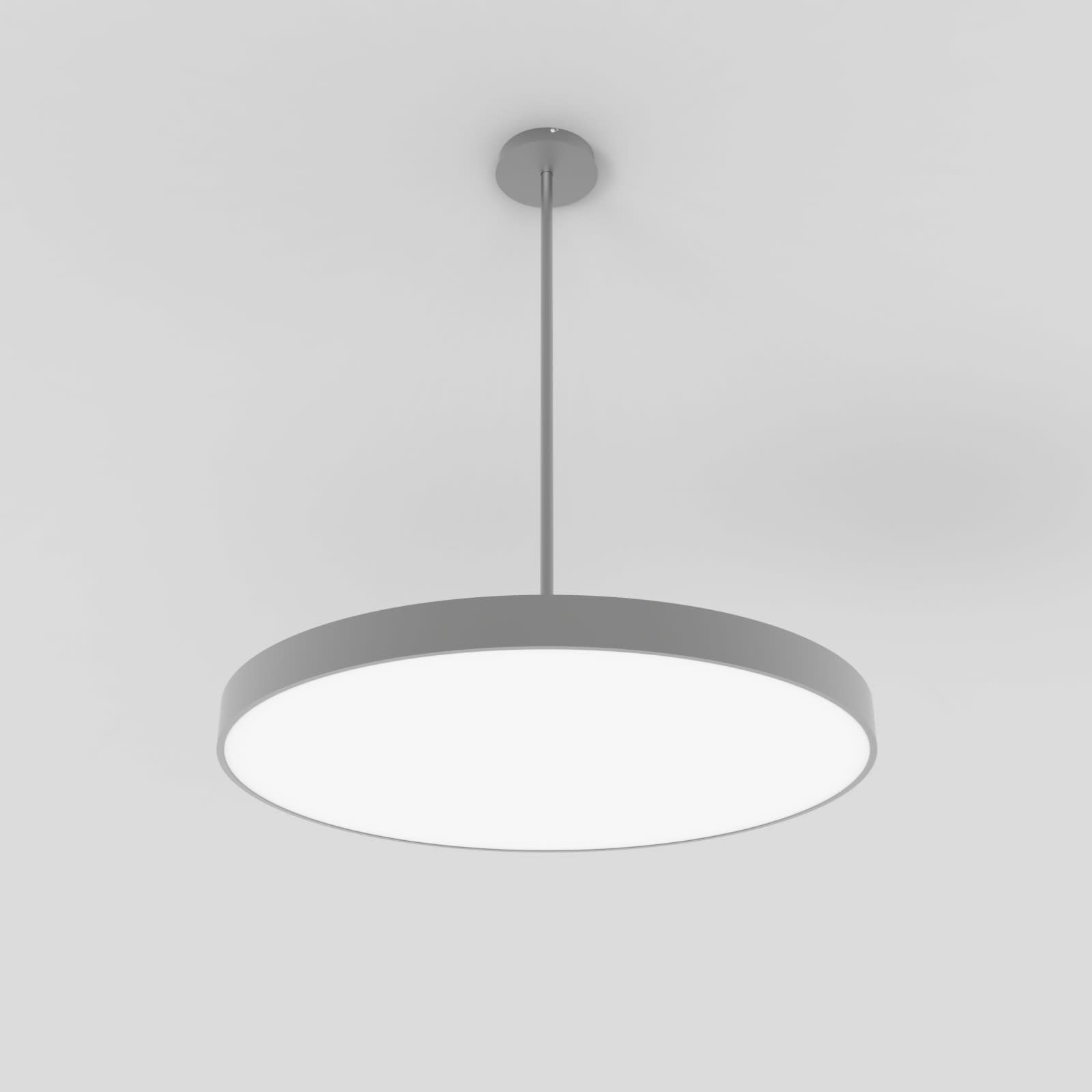 Luminaire LED de grande qualité avec boîtier de luminaire rond au design plat en aluminium extrudé avec surface thermolaquée, pour montage en suspension rigideet pour éclairage direct. Installation par Suspension rigide 'Pende' d'un diamètre de 20 mm, d'une longueur de 1000 mm, en supplément de 2000 mm commandable, raccourcissable individuellement et avec alimentation transparente guidée intérieurement. . 'Pende' en couleur de boîtier, revêtement en poudre en argent RAL9006 , incl. suspension rigide 1000mm en argent, individuellement raccourcissablepatère de plafond en argent avec 177x36 mm (d.xh) incl.. Diffuseur en PMMA microprismatique pour une luminance réduite (LRA). Raccordement électrique par 5 pôles utilisés, Luminaire équipé d’une technologie LED innovante avec une efficacité de 107 lm par W et une flux lumineux sortant de 13537 lm lm pour 127 W, en température de couleur 3000 K. Nombre d''adresses DALI : 2. Convertisseur DALI pour gradation , Evaluation de l''éblouissement selon la classification selon DIN EN 12464-1.2021-11 avec UGR < 22, ’Melanopic Ratio’ = [0,57], Indice de rendu des couleurs (IRC) > 90, tolérance chromatique étroite MacAdam 3, Groupe de risque RG0 selon norme IEC 62471, durée de vie nominale > 60.000 h [selon le décret de l’UE], classe énergétique (EEI) . Indice de protection IP50, résistance aux chocs IK07 selon norme IEC 62262:2012, classe de protection I. Sur demande, également en version avec capteur de mouvement et de luminosité contrôlable/programmable, Casambi également sur demande. Des télécommandes sont disponibles comme accessoires. Option de commutateur : C, source lumineuse remplaçable par le fabricant, dispositif de commande remplaçable par un professionnel autorisé, Dimensions DMxH : 0920x065 mm, hauteur totale du boîtier de 84 mm et hauteur visible de 65 mm, poids : 19.0 kg