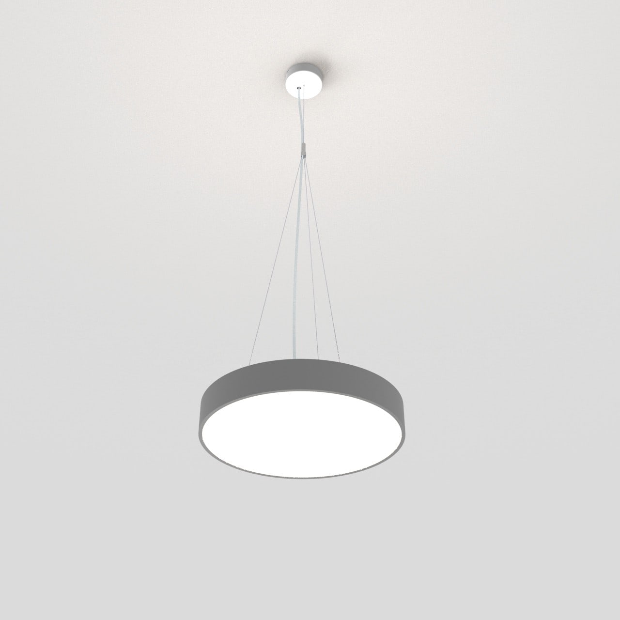 Luminaire LED de grande qualité avec boîtier de luminaire rond au design plat en aluminium extrudé avec surface thermolaquée, au centre pour un montage en suspension, et pour éclairage direct/indirect. Installation par 3 filins de suspension, 1 support de câble avec noeud, avec réglage de la longueur. alimentation transparent 1750 mm avec patère blanche en saillie 100x36 mm (d.xh) incl.. Diffuseur direct en polycarbonate microprismatique pour une luminance réduite (LRA), indirect en PMMA satiné. Raccordement électrique par 3 pôles utilisés, Luminaire équipé d’une technologie LED innovante avec une efficacité de 116 lm par W et une flux lumineux sortant de 4749 lm lm pour 41 W, en température de couleur 4000 K. Nombre d''adresses DALI : 1. Convertisseur DALI pour gradation , Evaluation de l''éblouissement selon la classification selon DIN EN 12464-1.2021-11 avec UGR < 19, ’Melanopic Ratio’ = [0,739], Indice de rendu des couleurs (IRC) > 90, tolérance chromatique étroite MacAdam 3, Groupe de risque RG0 selon norme IEC 62471, durée de vie nominale > 60.000 h [selon le décret de l’UE], classe énergétique (EEI) . Indice de protection IP50, résistance aux chocs IK07 selon norme IEC 62262:2012, classe de protection I. Sur demande, également en version éclairage de secours avec batterie de 3h ou dans la version avec capteur de mouvement et de luminosité contrôlable/programmable, Casambi également sur demande. Des télécommandes sont disponibles comme accessoires. L'éclairage d'urgence et le capteur ne peuvent pas être combinés. Option de commutateur : C, source lumineuse remplaçable par le fabricant, dispositif de commande remplaçable par un professionnel autorisé, Dimensions DMxH : 0420x065 mm, hauteur totale du boîtier de 84 mm et hauteur visible de 65 mm, poids : 3.3 kg
