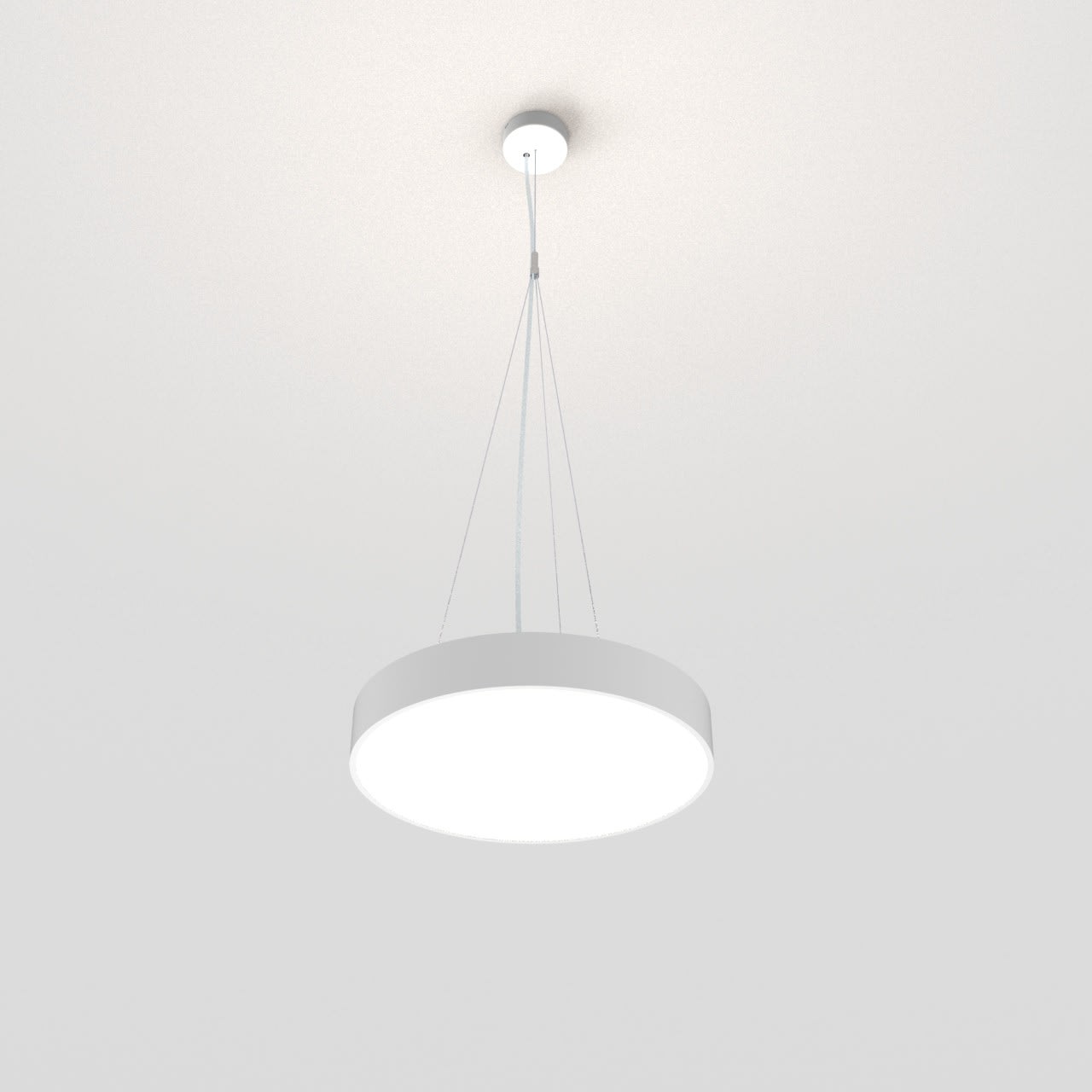 Luminaire LED de grande qualité avec boîtier de luminaire rond au design plat en aluminium extrudé avec surface thermolaquée, au centre pour un montage en suspension, et pour éclairage direct/indirect. Installation par 3 filins de suspension, 1 support de câble avec noeud, avec réglage de la longueur. alimentation transparent 1750 mm avec patère blanche en saillie 100x36 mm (d.xh) incl.. Diffuseurs direct et indirect en polycarbonate satiné pour un éclairage homogène. Raccordement électrique par 3 pôles utilisés, Luminaire équipé d’une technologie LED innovante avec une efficacité de 123 lm par W et une flux lumineux sortant de 5062 lm lm pour 41 W, en température de couleur 3000 K. Nombre d''adresses DALI : 1. Convertisseur DALI pour gradation , Evaluation de l''éblouissement selon la classification selon DIN EN 12464-1.2021-11 avec UGR < 22, ’Melanopic Ratio’ = [0,57], Indice de rendu des couleurs (IRC) > 90, tolérance chromatique étroite MacAdam 3, Groupe de risque RG0 selon norme IEC 62471, durée de vie nominale > 60.000 h [selon le décret de l’UE], classe énergétique (EEI) . Indice de protection IP50, résistance aux chocs IK07 selon norme IEC 62262:2012, classe de protection I. Sur demande, également en version éclairage de secours avec batterie de 3h ou dans la version avec capteur de mouvement et de luminosité contrôlable/programmable, Casambi également sur demande. Des télécommandes sont disponibles comme accessoires. L'éclairage d'urgence et le capteur ne peuvent pas être combinés. Option de commutateur : C, source lumineuse remplaçable par le fabricant, dispositif de commande remplaçable par un professionnel autorisé, Dimensions DMxH : 0420x065 mm, hauteur totale du boîtier de 84 mm et hauteur visible de 65 mm, poids : 3.3 kg
