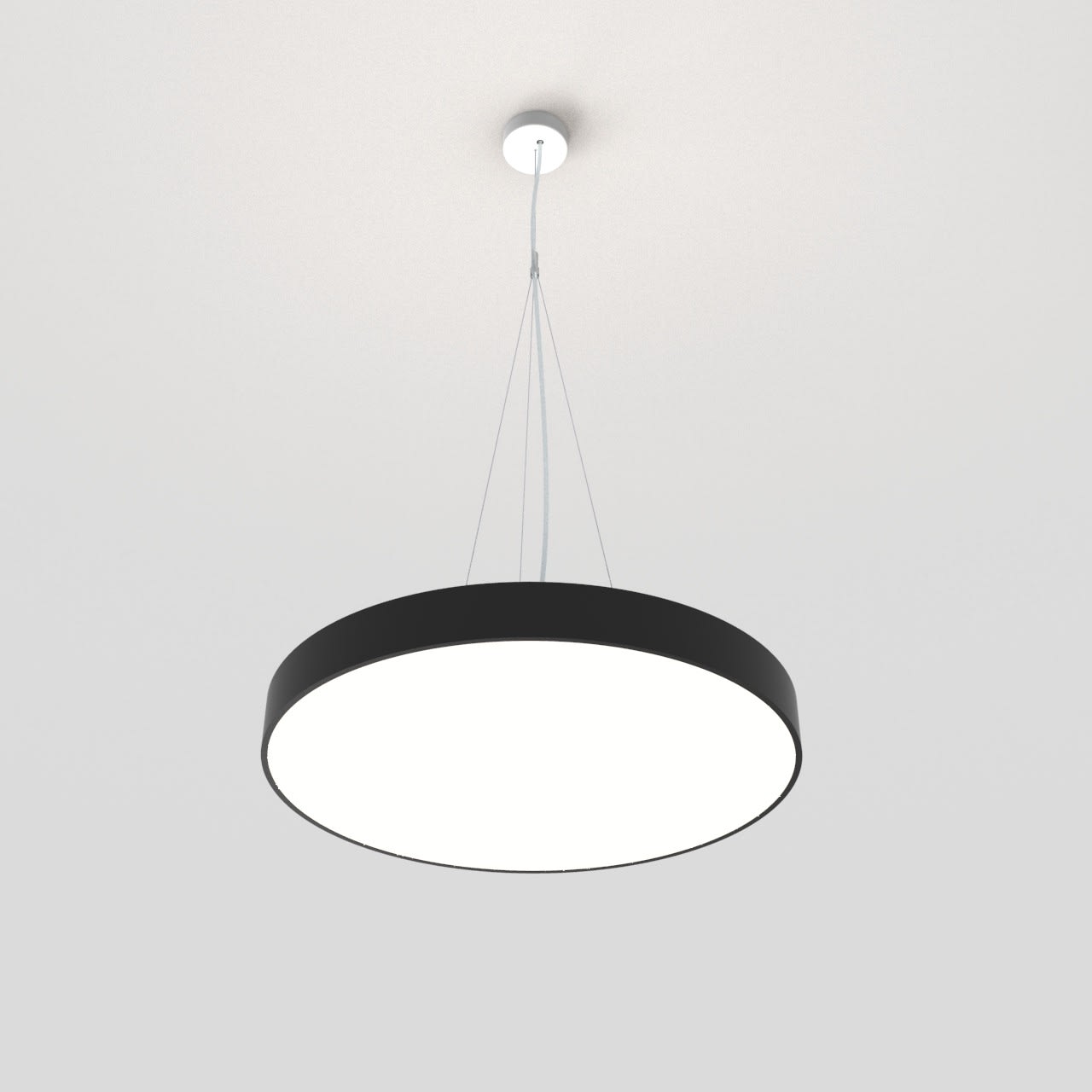 Luminaire LED de grande qualité avec boîtier de luminaire rond au design plat en aluminium extrudé avec surface thermolaquée, au centre pour un montage en suspension, et pour éclairage direct/indirect. Installation par 3 filins de suspension, 1 support de câble avec noeud, avec réglage de la longueur. alimentation transparent 1750 mm avec patère blanche en saillie 100x36 mm (d.xh) incl.. Diffuseurs direct et indirect en polycarbonate satiné pour un éclairage homogène. Raccordement électrique par 3 pôles utilisés, Luminaire équipé d’une technologie LED innovante avec une efficacité de 127 lm par W et une flux lumineux sortant de 9673 lm lm pour 76 W, en température de couleur 4000 K. Nombre d''adresses DALI : 2. Convertisseur DALI pour gradation , Evaluation de l''éblouissement selon la classification selon DIN EN 12464-1.2021-11 avec UGR < 22, ’Melanopic Ratio’ = [0,739], Indice de rendu des couleurs (IRC) > 90, tolérance chromatique étroite MacAdam 3, Groupe de risque RG0 selon norme IEC 62471, durée de vie nominale > 60.000 h [selon le décret de l’UE], classe énergétique (EEI) . Indice de protection IP50, résistance aux chocs IK07 selon norme IEC 62262:2012, classe de protection I. Sur demande, également en version avec capteur de mouvement et de luminosité contrôlable/programmable, Casambi également sur demande. Des télécommandes sont disponibles comme accessoires. Option de commutateur : C, source lumineuse remplaçable par le fabricant, dispositif de commande remplaçable par un professionnel autorisé, Dimensions DMxH : 0620x065 mm, hauteur totale du boîtier de 84 mm et hauteur visible de 65 mm, poids : 5.7 kg