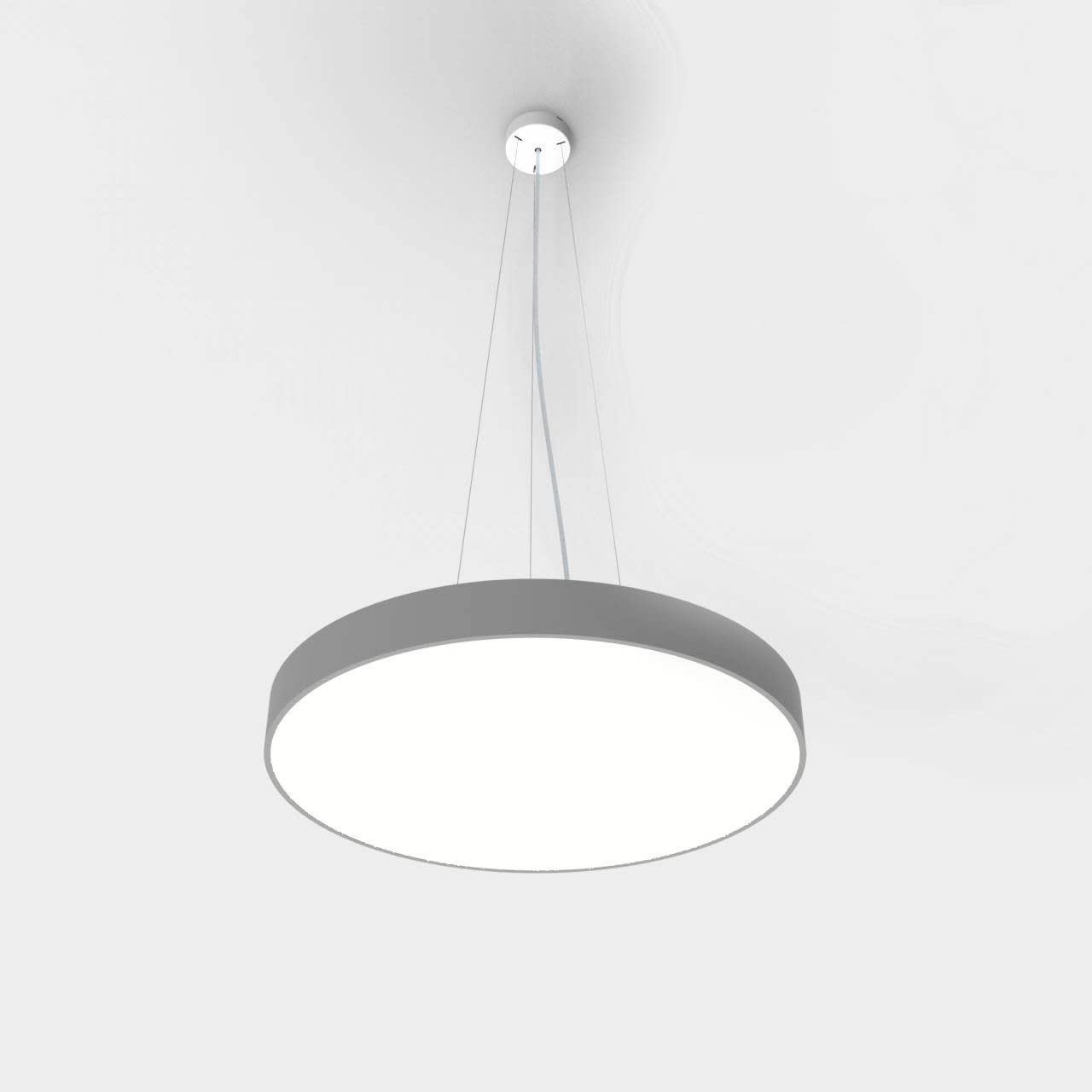 Luminaire LED de grande qualité avec boîtier de luminaire rond au design plat en aluminium extrudé avec surface thermolaquée, pour un montage en suspension au centre de la fusion, et pour éclairage direct. Installation par 3 filins de suspension, avec réglage de la longueur. alimentation transparent 1750 mm avec patère blanche en saillie 100x36 mm (d.xh) incl.. Diffuseur en PMMA microprismatique pour une luminance réduite (LRA). Raccordement électrique par 3 pôles utilisés, Luminaire équipé d’une technologie LED innovante avec une efficacité de 117 lm par W et une flux lumineux sortant de 5967 lm lm pour 51 W, en température de couleur 3000 K. Nombre d''adresses DALI : 1. Convertisseur DALI pour gradation , Evaluation de l''éblouissement selon la classification selon DIN EN 12464-1.2021-11 avec UGR < 22, ’Melanopic Ratio’ = [0,57], Indice de rendu des couleurs (IRC) > 90, tolérance chromatique étroite MacAdam 3, Groupe de risque RG0 selon norme IEC 62471, durée de vie nominale > 60.000 h [selon le décret de l’UE], classe énergétique (EEI) . Indice de protection IP50, résistance aux chocs IK07 selon norme IEC 62262:2012, classe de protection I. Sur demande, également en version éclairage de secours avec batterie de 3h ou dans la version avec capteur de mouvement et de luminosité contrôlable/programmable, Casambi également sur demande. Des télécommandes sont disponibles comme accessoires. L'éclairage d'urgence et le capteur ne peuvent pas être combinés. Option de commutateur : C, source lumineuse remplaçable par le fabricant, dispositif de commande remplaçable par un professionnel autorisé, Dimensions DMxH : 0620x065 mm, hauteur totale du boîtier de 84 mm et hauteur visible de 65 mm, poids : 4.9 kg