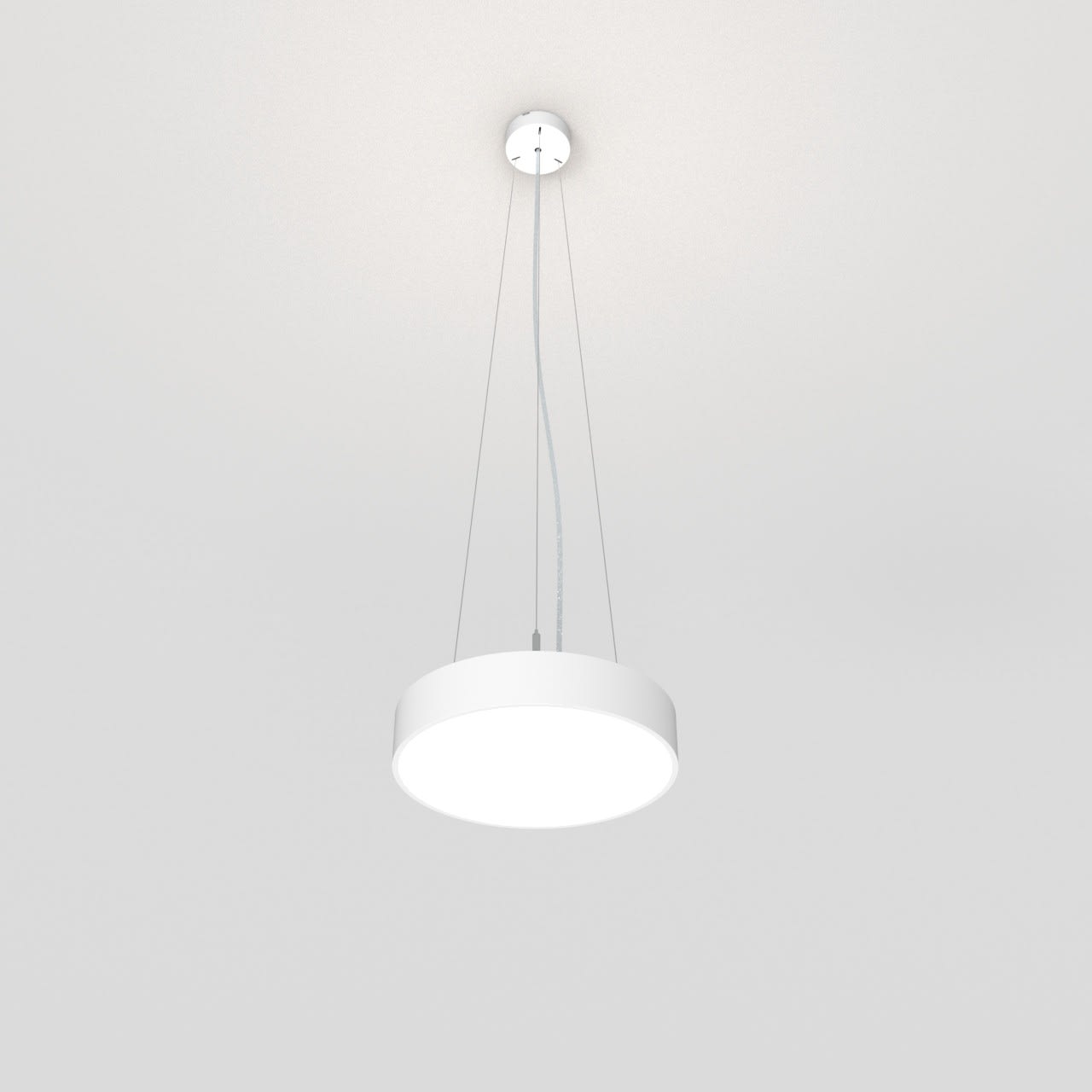 Luminaire LED de grande qualité avec boîtier de luminaire rond au design plat en aluminium extrudé avec surface thermolaquée, pour un montage en suspension au centre de la fusion, et pour éclairage direct/indirect. Installation par 3 filins de suspension, avec réglage de la longueur. alimentation transparent 1750 mm avec patère blanche en saillie 100x36 mm (d.xh) incl.. Diffuseurs direct et indirect en polycarbonate satiné pour un éclairage homogène. Raccordement électrique par 3 pôles utilisés, Luminaire équipé d’une technologie LED innovante avec une efficacité de 112 lm par W et une flux lumineux sortant de 3134 lm lm pour 28 W, en température de couleur 4000 K. Nombre d''adresses DALI : 1. Convertisseur DALI pour gradation , Evaluation de l''éblouissement selon la classification selon DIN EN 12464-1.2021-11 avec UGR < 25, ’Melanopic Ratio’ = [0,739], Indice de rendu des couleurs (IRC) > 90, tolérance chromatique étroite MacAdam 3, Groupe de risque RG0 selon norme IEC 62471, durée de vie nominale > 60.000 h [selon le décret de l’UE], classe énergétique (EEI) . Indice de protection IP50, résistance aux chocs IK07 selon norme IEC 62262:2012, classe de protection I. Sur demande, également en version éclairage de secours avec batterie de 3h ou dans la version avec capteur de mouvement et de luminosité contrôlable/programmable, Casambi également sur demande. Des télécommandes sont disponibles comme accessoires. L'éclairage d'urgence et le capteur ne peuvent pas être combinés. Option de commutateur : C, source lumineuse remplaçable par le fabricant, dispositif de commande remplaçable par un professionnel autorisé, Dimensions DMxH : 0330x065 mm, hauteur totale du boîtier de 84 mm et hauteur visible de 65 mm, poids : 2.5 kg