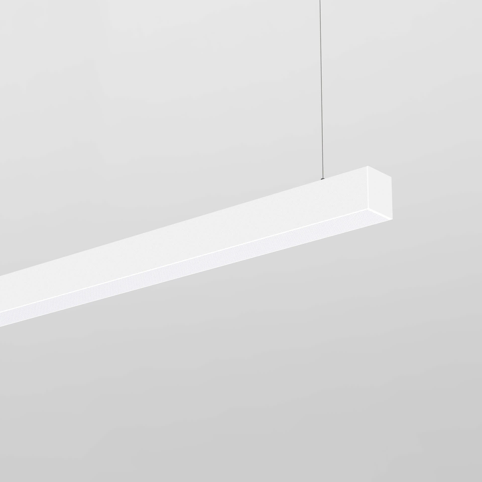 Luminaire LED de grande qualité, en aluminium extrudé avec surface thermolaquée en blanc ’RAL9016’, structure fine mate, pour montage en suspension, 2 filins de suspension 1500 mm avec tendeurs rapides inclus, et pour éclairage direct/indirect, Diffuseur directe en PMMA microprismatique pour une luminance réduite (LRA). Un couvercle indirect en polycarbonate transparent est disponible comme accessoire, son utilisation (en option) influence la distribution de la lumière et réduit le flux lumineux de 159 lm. Raccordement électrique par alimentation transparent 1750 mm avec patère blanche en saillie (lxLxH: 130x53x25 mm), embouts et 2 filins de suspension 1500 mm avec tendeurs rapides et graduable avec driver LED DALI à courant constant inclus. Luminaire équipé d’une technologie LED innovante avec une efficacité de 126 lm par W et un flux lumineux sortant de 5551 lm pour 44 W, en température de couleur 3000 K, Evaluation de l'éblouissement selon la classification selon DIN EN 12464-1.2021-11 avec UGR < 19, ’Melanopic Ratio’ = (0,57), indice de rendu des couleurs (IRC) > 90, indice de protection IP20, classe de protection I, Groupe de risque RG0 selon norme IEC 62471, durée de vie nominale > 60.000 h [selon le décret de l’UE]. Des câbles design de différentes longueurs et couleurs sont disponibles en option pour l’alimentation, des solutions individuelles personnalisées sont possibles avec des éléments compatibles : p.thirty segments linéaire, p.thirty segments en forme de L horizontal et vertical, p.thirty segments en forme de T ou X horizontal. source lumineuse, dispositif de commande, Dimensions LxlxH : 1457x31x035 mm, poids : 1,2 kg