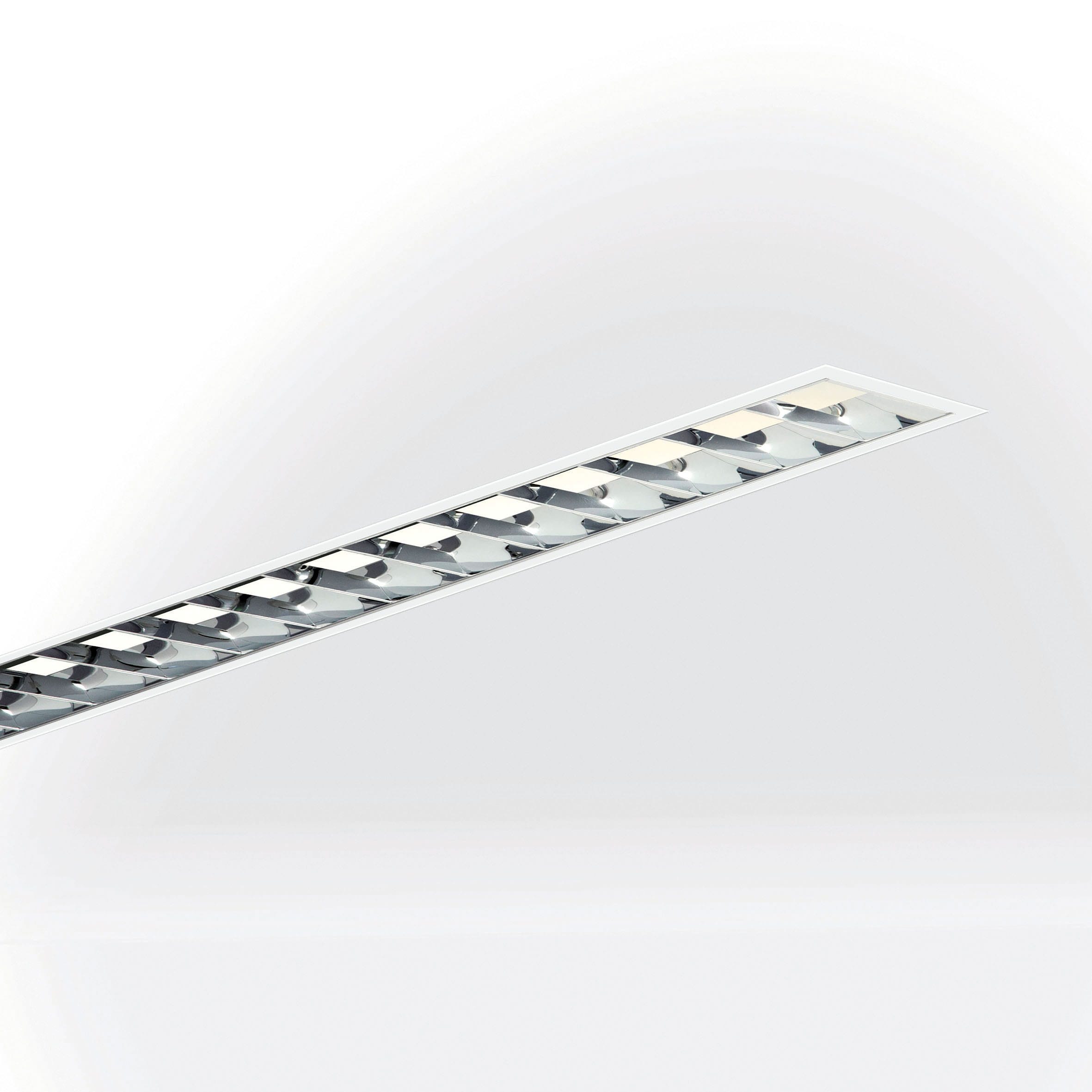 Luminaire profilé LED de grande qualité, en aluminium extrudé, avec surface thermolaquée en blanc ’RAL9016’, structure fine mate, pour le montage encastré dans faux plafonds (de 12,5 à 40 mm d’épaisseur), au moyen d’un étrier d’encastrement inclus, et pour éclairage direct. Diffusion directe de la lumière par grille de défilement brillante. Raccordement électrique par 5 pôles utilisés, embouts inclus. Luminaire équipé d’une technologie LED innovante avec une efficacité de 94 lm par W et un flux lumineux sortant de 4822 lm pour 51 W, en température de couleur 4000 K. Raccordement électrique par 5 pôles utilisés, embouts et 3 étriers d’encastrement et graduable avec driver LED DALI à courant constant inclus. Luminaire équipé d’une technologie LED innovante avec une efficacité de 94 lm par W et un flux lumineux sortant de 4822 lm pour 51 W, en température de couleur 4000 K, Evaluation de l'éblouissement selon la classification selon DIN EN 12464-1.2021-11 avec UGR < 16, luminaire de poste de travail compatible écran selon DIN EN 12464-1 (luminosité à 65° <= 1000 cd/m²), ’Melanopic Ratio’ = (0,742), indice de rendu des couleurs (IRC) > 90, indice de protection IP20, classe de protection I, Groupe de risque RG0 selon norme IEC 62471, durée de vie nominale > 60.000 h [selon le décret de l’UE]. Sur demande également en version d’éclairage d’urgence, batterie 3h. Sur demande, également en version avec capteur de mouvement et de luminosité contrôlable/programmable, Casambi également sur demande, des télécommandes sont disponibles comme accessoires, Option de commutateur : C, des solutions individuelles personnalisées sont possibles avec des éléments compatibles : inserts triflect, inserts anto+, inserts zenit S et inserts zenit XS. source lumineuse remplaçable par un professionnel autorisé, dispositif de commande remplaçable par un professionnel autorisé, Dimensions LxlxH : 2271x86x082 mm, Découpe LxlxH : 2262x77x090 mm with detached transport protectionprofondeur de montage de 91 à 119 mm. Exactement 91 mm seulement avec une épaisseur de plafond de 12,5 mm, poids : 7,5 kg