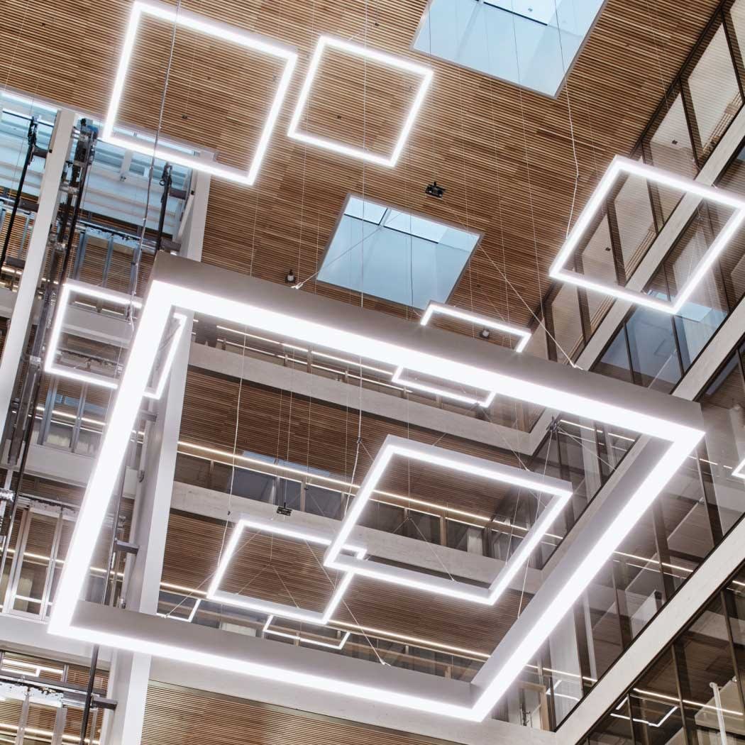 Luminaire profilé LED de grande qualité, en aluminium extrudé, avec surface thermolaquée en noir ’RAL9005’, structure fine mate, pour montage en suspension et pour éclairage direct/indirect. Diffusion directe de la lumière par grille de défilement brillante. Raccordement électrique par alimentation transparent 1750 mm avec patère blanche en saillie (IxLxH: 90x60x25 mm), embouts inclus. Luminaire équipé d’une technologie LED innovante avec une efficacité de 117 lm par W et un flux lumineux sortant de 11968 lm pour 102 W, en température de couleur 4000 K. Raccordement électrique par alimentation transparent 1750 mm avec patère blanche en saillie (IxLxH: 90x60x25 mm), embouts et 2 filins de suspension 1500 mm avec tendeurs rapides et graduable avec driver LED DALI à courant constant inclus. Luminaire équipé d’une technologie LED innovante avec une efficacité de 117 lm par W et un flux lumineux sortant de 11968 lm pour 102 W, en température de couleur 4000 K, Evaluation de l'éblouissement selon la classification selon DIN EN 12464-1.2021-11 avec UGR < 16, luminaire de poste de travail compatible écran selon DIN EN 12464-1 (luminosité à 65° <= 1000 cd/m²), ’Melanopic Ratio’ = (0,742), indice de rendu des couleurs (IRC) > 90, indice de protection IP20, classe de protection I, Groupe de risque RG0 selon norme IEC 62471, durée de vie nominale > 60.000 h [selon le décret de l’UE]. Câble design en différentes couleurs comme alimentation en option comme extra. Sur demande également en version d’éclairage d’urgence, batterie 3h. Sur demande, également en version avec capteur de mouvement et de luminosité contrôlable/programmable, Casambi également sur demande, des télécommandes sont disponibles comme accessoires, Option de commutateur : C, des solutions individuelles personnalisées sont possibles avec des éléments compatibles : inserts triflect, inserts anto+, inserts zenit S et inserts zenit XS. source lumineuse remplaçable par un professionnel autorisé, dispositif de commande remplaçable par un professionnel autorisé, Dimensions LxlxH : 2259x70x100 mmpoids : 8,3 kg