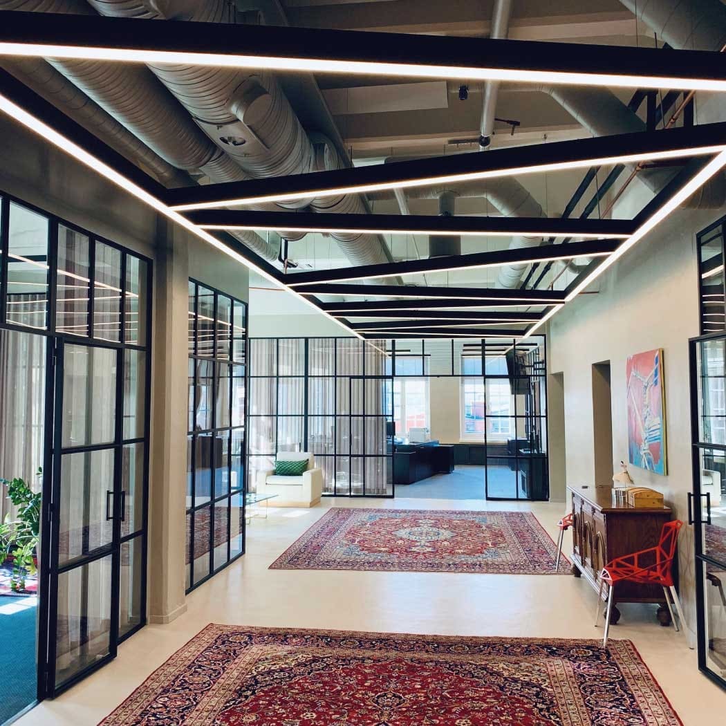 Luminaire profilé LED de grande qualité, en aluminium extrudé, avec surface thermolaquée en noir ’RAL9005’, structure fine mate, pour montage en suspension et pour éclairage direct. Diffusion directe de la lumière par grille de défilement brillante. Raccordement électrique par alimentation transparent 1750 mm avec patère blanche en saillie (IxLxH: 90x60x25 mm), embouts inclus. Luminaire équipé d’une technologie LED innovante avec une efficacité de 88 lm par W et un flux lumineux sortant de 5716 lm pour 65 W, en température de couleur 3000 K. Raccordement électrique par alimentation transparent 1750 mm avec patère blanche en saillie (IxLxH: 90x60x25 mm), embouts et 3 filins de suspension 1500 mm avec tendeurs rapides et graduable avec driver LED DALI à courant constant inclus. Luminaire équipé d’une technologie LED innovante avec une efficacité de 88 lm par W et un flux lumineux sortant de 5716 lm pour 65 W, en température de couleur 3000 K, Evaluation de l'éblouissement selon la classification selon DIN EN 12464-1.2021-11 avec UGR < 16, luminaire de poste de travail compatible écran selon DIN EN 12464-1 (luminosité à 65° <= 1000 cd/m²), ’Melanopic Ratio’ = (0,538), indice de rendu des couleurs (IRC) > 90, indice de protection IP20, classe de protection I, Groupe de risque RG0 selon norme IEC 62471, durée de vie nominale > 60.000 h [selon le décret de l’UE]. Câble design en différentes couleurs comme alimentation en option comme extra. Sur demande également en version d’éclairage d’urgence, batterie 3h. Sur demande, également en version avec capteur de mouvement et de luminosité contrôlable/programmable, Casambi également sur demande, des télécommandes sont disponibles comme accessoires, Option de commutateur : C, des solutions individuelles personnalisées sont possibles avec des éléments compatibles : inserts triflect, inserts anto+, inserts zenit S et inserts zenit XS. source lumineuse remplaçable par un professionnel autorisé, dispositif de commande remplaçable par un professionnel autorisé, Dimensions LxlxH : 2819x70x100 mmpoids : 9,4 kg
