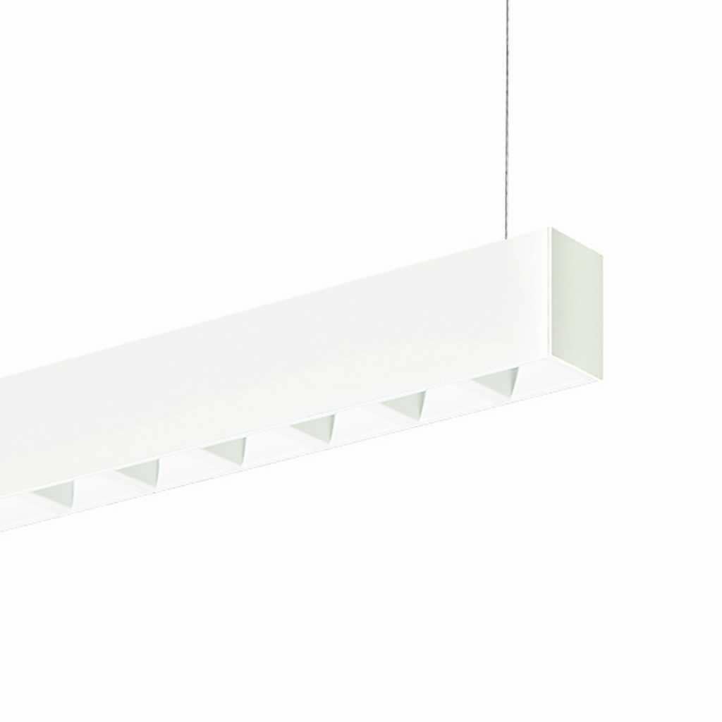 Nouveau luminaire de bureau profilé LED de grande qualité, en aluminium extrudé avec surface thermolaquée en blanc ’RAL9016’ pour le montage en suspension, et l’éclairage direct/indirect. Diffusion directe de la lumière par Grille 'white matte'. Diffuseur indirect en polycarbonate transparent. alimentation transparent 1750 mm avec patère blanche en saillie (lxLxH: 130x55x25 mm) inclus. Solution élégante pour le câble d’alimentation, embouts inclus. Installation par câbles de suspension (longueur max. 1500 mm), avec réglage de la longueur en continu par tendeurs rapides. Convertisseur DALI pour gradation inclus. Luminaire équipé d’une technologie LED innovante avec une efficacité de 129 lm par W et une flux lumineux sortant de 14482lm pour 112 W, en température de couleur 4000 K (nominale), 3989 K (effective). Evaluation de l'éblouissement selon la classification selon DIN EN 12464-1.2021-11 avec UGR < 25, indice de rendu des couleurs (IRC) > 90, indice de protection IP20, classe de protection I, Groupe de risque RG0 selon norme IEC 62471, durée de vie nominale > 60.000 h [selon le décret de l’UE]. Sur demande également en version d’éclairage d’urgence, batterie 3h. Des câbles design de différentes longueurs et couleurs sont disponibles en option pour l'alimentation, Option de commutateur : C, source lumineuse remplaçable par le fabricant, dispositif de commande remplaçable par un professionnel autorisé, Dimensions LxlxH : 2804x50x066 mm, embouts inclus, poids : 7,5 kg