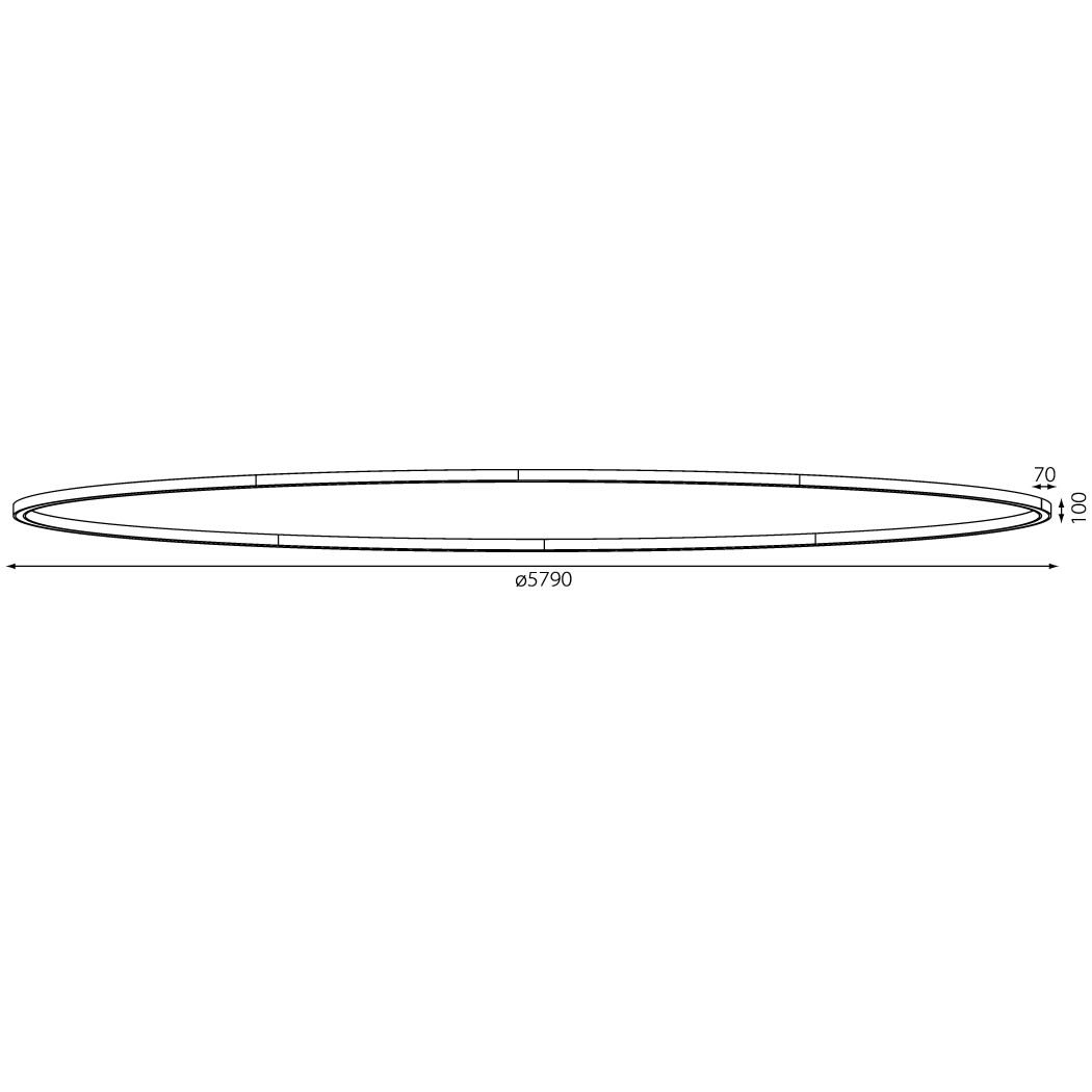 Anneau lumineux LED de grande qualité avec boîtier de luminaire, composé de Lamiera d'acciaio, en 8 segments d'anneaux, avec surface thermolaquée en noir ’RAL9005’, structure fine mate, pour montage en saillie, et pour éclairage direct. Installation par à l'aide du matériel de montage fourni. Raccordement électrique par 5 pôles, Diffuseur direct en polycarbonate satiné pour un éclairage homogène. Luminaire équipé d’une technologie LED innovante avec une efficacité de 104 lm par W et une flux lumineux sortant de 46104 lm pour 445 W, en température de couleur 4000 K. Convertisseur DALI pour gradation inclus, Evaluation de l’éblouissement selon la classification selon DIN EN 12464-1.2021-11 avec UGR < 25Indice de rendu des couleurs (IRC) > 90, tolérance chromatique étroite MacAdam 3, Indice de protection IP40, classe de protection I, Groupe de risque RG = 0 selon norme IEC 62471, durée de vie nominale > 60.000 h [selon le décret de l’UE]. Sur demande également en version d’éclairage d’urgence, batterie 3h. Dimensions DMxH : 5790x100 mm, largeur de la section 70 mm, Poids : 63,2 kg