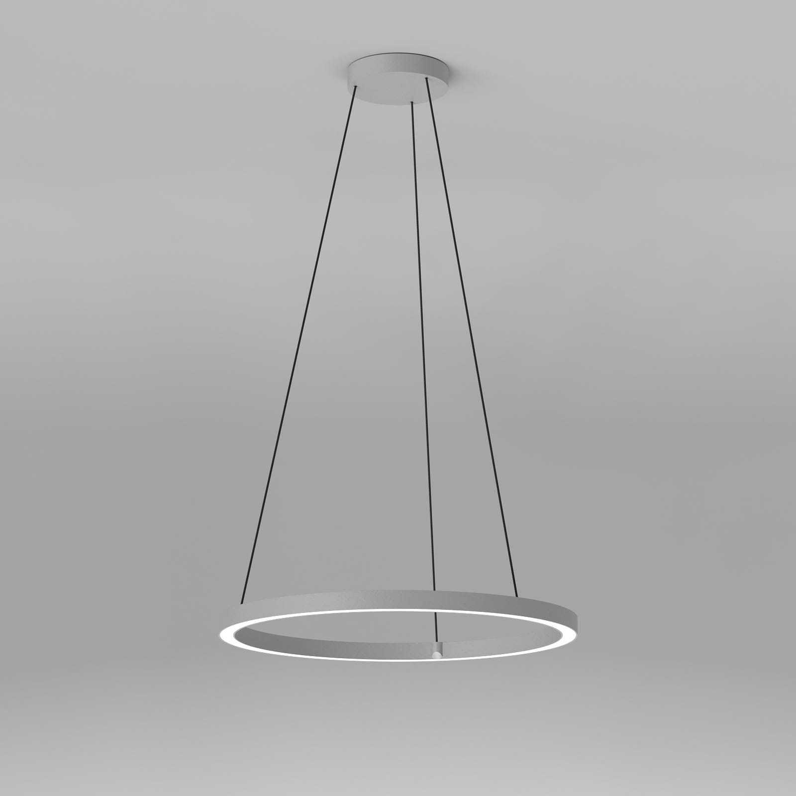 Anneau lumineux LED de grande qualité avec boîtier de luminaire, composé de Aluminium, avec surface thermolaquée en argent ’RAL9006’, structure fine mate, pour un montage en suspension au centre de la fusion, et pour éclairage direct. Installation par 3 filins de suspension 1500 mm avec tendeurs rapides, avec réglage de la longueur. Raccordement électrique par 5 pôles utilisés et câble d’alimentation noir et patère argent de plafond, 200x39 mm (DMxH), positionnement centré. Positionnement de la patère au choix centré, suspension centrale de type Z, fusion centrale. Diffuseur en satiné pour un éclairage homogène. Luminaire équipé d’une technologie LED innovante avec une efficacité de 107 lm par W et une flux lumineux sortant de Convertisseur DALI pour gradation inclus, Nombre d’adresses DALI : 1, Evaluation de l'éblouissement selon la classification selon DIN EN 12464-1.2021-11 avec UGR < 28, Indice de rendu des couleurs (IRC) > 90, tolérance chromatique étroite MacAdam 3, Indice de protection IP20, classe de protection I, Groupe de risque RG = 0 selon norme IEC 62471, durée de vie nominale > 60.000 h [selon le décret de l’UE]. Option de commutateur : C, Dimensions DMxH : 0705x035 mm, largeur de la section 54 mm. Poids : 2,7 kg