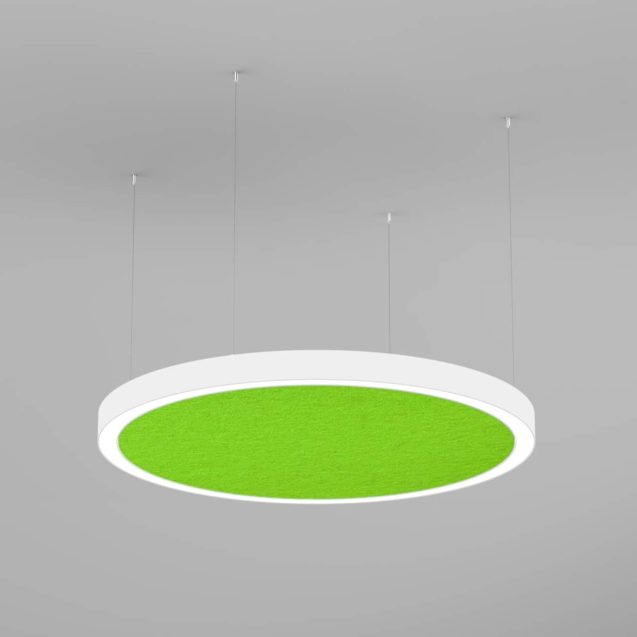Corps de luminaire en profilé de grande qualité, composé de tôle d'acier de forme annulaire avec surface thermolaquée en blanc ’RAL9016’, structure fine mate, avec panneau acoustique 'Lime' pour montage en suspension, et pour éclairage direct. central, extrêmement efficace pour réduire le temps de résonance. Installation par 4 filins de suspension 1500 mm avec tendeurs rapides, patère de plafond en blanc avec 100x35 mm (d.xh) incl.. Raccordement électrique par 5 pôles, Diffuseur direct en polycarbonate satiné pour un éclairage homogène. Luminaire équipé d’une technologie LED innovante avec une efficacité de 98 lm par W et une flux lumineux sortant de 10912 lm pour 111 W, en température de couleur 3000 K. Convertisseur DALI pour gradation inclus, Evaluation de l’éblouissement selon la classification selon DIN EN 12464-1.2021-11 avec UGR < 25Indice de rendu des couleurs (IRC) > 90, tolérance chromatique étroite MacAdam 3, Indice de protection IP40, classe de protection I, Groupe de risque RG = 0 selon norme IEC 62471, durée de vie nominale > 60.000 h [selon le décret de l’UE]. Dimensions DMxH : 1530x100 mm, largeur de la section 70 mm, Poids : 39,5 kg