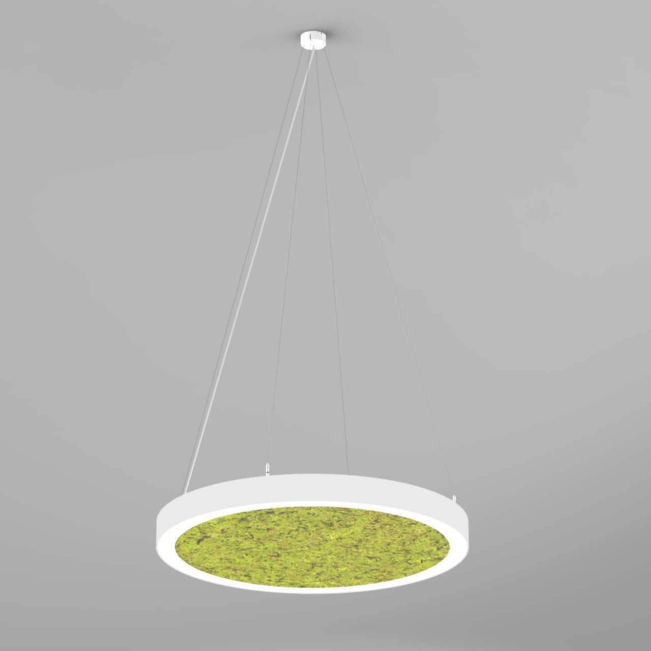 Corps de luminaire en profilé de grande qualité, composé de tôle d'acier de forme annulaire avec surface thermolaquée en blanc ’RAL9016’, structure fine mate, avec panneau acoustique 'Mous' pour un montage en suspension au centre de la fusion, et pour éclairage direct. central, extrêmement efficace pour réduire le temps de résonance. Grande capacité d’absorption des ondes attrclasse d’absorption A, coefficient d’absorption acoustique pondéré (aw) = 0.90 selon norme internationale (EN ISO 11654), revêtements décoratifs Organoide®. Installation par 4 filins de suspension, réglable en continu, patère de plafond en white avec 100 x 36 mm (d.xh) incl.. Raccordement électrique par 5 pôles, Diffuseur en polycarbonate microprismatique pour une luminance réduite (LRA). Luminaire équipé d’une technologie LED innovante avec une efficacité de 109 lm par W et une flux lumineux sortant de 8808 lm pour 81 W, en température de couleur 3000 K. Convertisseur DALI pour gradation inclus, Evaluation de l’éblouissement selon la classification selon DIN EN 12464-1.2021-11 avec UGR < 22Indice de rendu des couleurs (IRC) > 90, tolérance chromatique étroite MacAdam 3, Indice de protection IP40, classe de protection I, Groupe de risque RG = 0 selon norme IEC 62471, durée de vie nominale > 60.000 h [selon le décret de l’UE]. Dimensions DMxH : 1174x100 mm, largeur de la section 70 mm, Poids : 26,2 kg