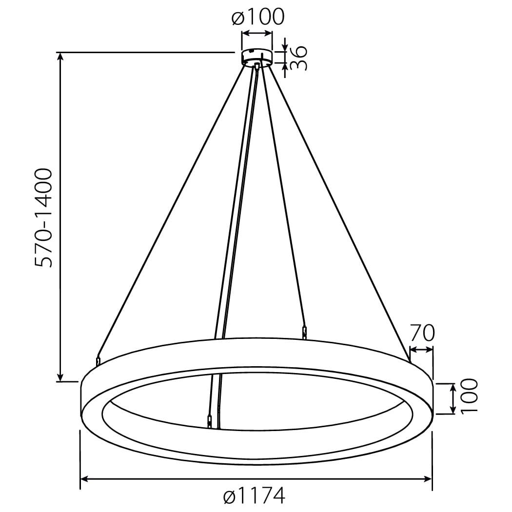 Anneau lumineux LED de grande qualité avec boîtier de luminaire, composé de Lamiera d'acciaio, avec surface thermolaquée en blanc ’RAL9016’, structure fine mate, pour un montage en suspension au centre de la fusion, et pour éclairage direct/indirect. Installation par 4 filins de suspension, réglable en continu, alimentation transparent 1750 mm avec patère blanche en saillie 100x36 mm (d.xh) incl.. Raccordement électrique par 5 pôles, Diffuseur direct en polycarbonate satiné pour un éclairage homogène et indirect en polycarbonate transparent. Luminaire équipé d’une technologie LED innovante avec une efficacité de 111 lm par W et une flux lumineux sortant de 17888 lm pour 161 W, en température de couleur 3000 K. Convertisseur DALI pour gradation inclus, Evaluation de l’éblouissement selon la classification selon DIN EN 12464-1.2021-11 avec UGR < 19Indice de rendu des couleurs (IRC) > 90, tolérance chromatique étroite MacAdam 3, Indice de protection IP40, classe de protection I, Groupe de risque RG = 0 selon norme IEC 62471, durée de vie nominale > 60.000 h [selon le décret de l’UE]. Sur demande également en version d’éclairage d’urgence, batterie 3h. Dimensions DMxH : 1174x100 mm, largeur de la section 70 mm, Poids : 12,0 kg