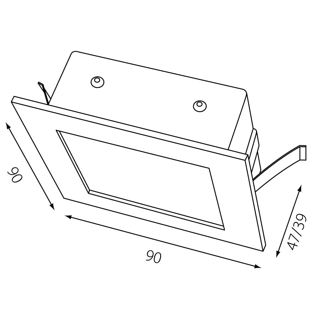 LED applique murale en Aluminium et pearl chrome, carré, étriers d'encastrement et borne enfichable inclus. Indice de protection IP20, classe de protection II, classe énergétique (EEI). 40 lm et 2.5 W, température de couleur de 3000 K, indice de rendu des couleurs (IRC) > 90. Convertisseur. En option : le boîtier et le cadre de montage. Dimensions LxlxH : 90x90x039 mm,, Découpe LxlxH : 77x77x050 mm, Poids : 0,2 kg