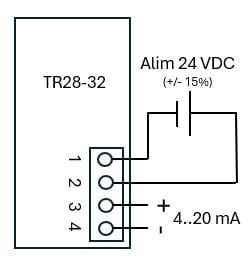 Transformateur d'Intensité - Famille TR28 - 60 A sortie 4-20 mA - Diamètre 28 mm - Classe 0.5 - Alim 24 VDC