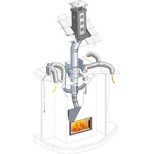 Le conduit échangeur, au cœur du système, assure l'évacuation des fumées et permet de réchauffer l'air avant de le distribuer de façon homogène dans les pièces de la maison.Optimisation de l’installation bois Qualité d’air préservée Économie d’énergie