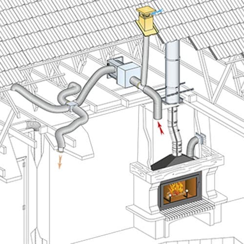 Le système CONFORT permet de récupérer l’air chaud dans la hotte du foyer fermé et de le distribuer dans les pièces d’habitation choisies. Composé d’une sortie de toit air frais, d’un moteur de ventilation et d’un réseau de distribution, CONFORT optimise le rendement d’une installation existante et permet de réduire les dépenses de chauffage. Jusqu’à 6 pièces peuvent être raccordées avec CONFORT. L’insert peut ainsi devenir l’appareil de chauffage principal de l’habitat.