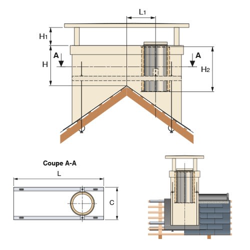 Les sorties de toit BRETAGNE s’intègrent naturellement aux régions Nord-Ouest de la France.En finition "Blanc cassé" ou "Crépi ocre", elles peuvent aussi recevoir une finition ardoise sur chantier grâce au kit bois. Poujoulat conseille l'utilisation du chapeau France classique (4 pieds tablette).Styles caractéristiquesRespect des codes locauxQualité
