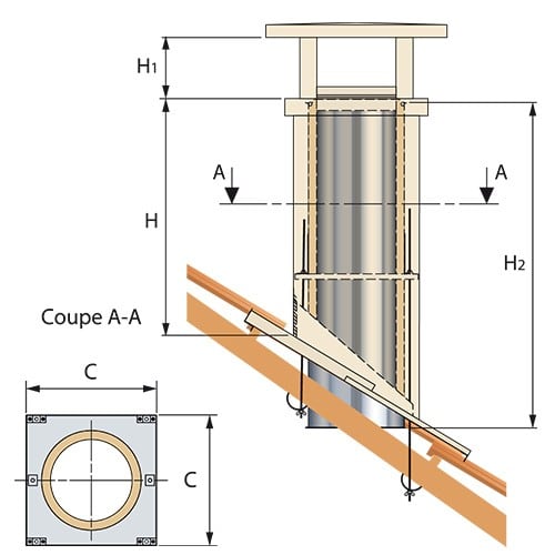 La sortie de toit réf. TCP permet un ajustement à la pente du toit sur tous les matériaux de couverture. L'embase d'étanchéité réf. EBT (tuiles), EBU (universelle), ou EBA (ardoises) est spécialement réalisée en usine selon votre pente et votre matériau de couverture et garantie une étanchéité immédiate et parfaite. La fixation à la charpente est universelle (cadre réf. FSB).Légère et économique Sans gros œuvre Entretien aisé Fabrication sur mesure