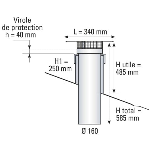 Sortie de toit pour couverture tuile, simple paroi VENTÉLIA Poujoulat Noir pour Hotte de cuisine|Sèche-linge|VMC
