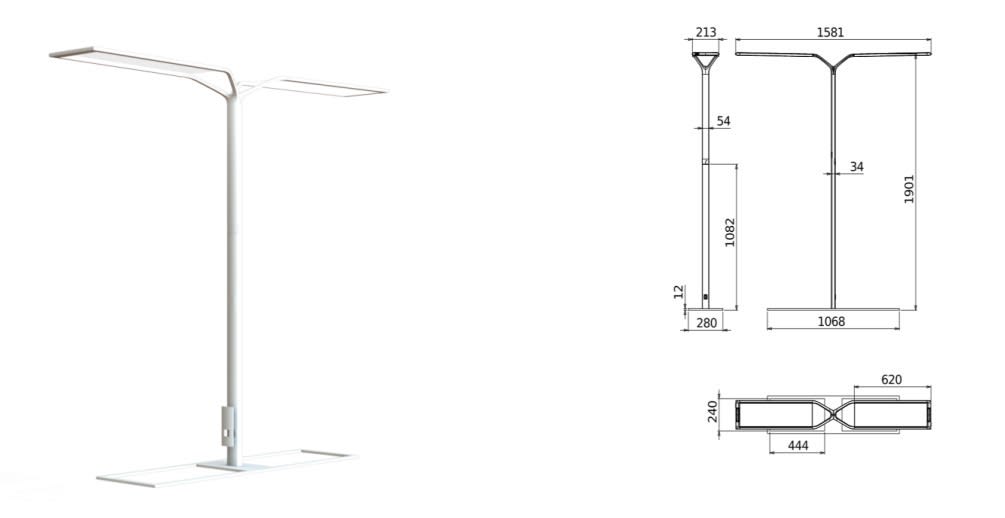 Luminaire sur pied trema deporte double 49W 4000K 6119LM 125LM/W IRC80 dimmable par bouton poussoir intégré livré monté