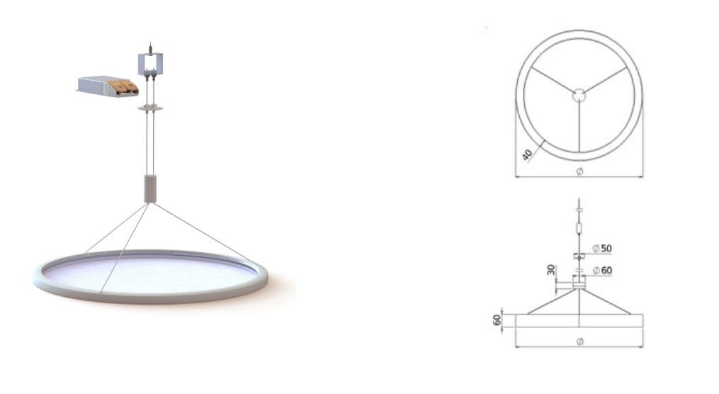Luminaire LED rond suspendu scenari pour plafond demontable 23W 4000K 2924LM 127LM/W IRC80 ø 470MM