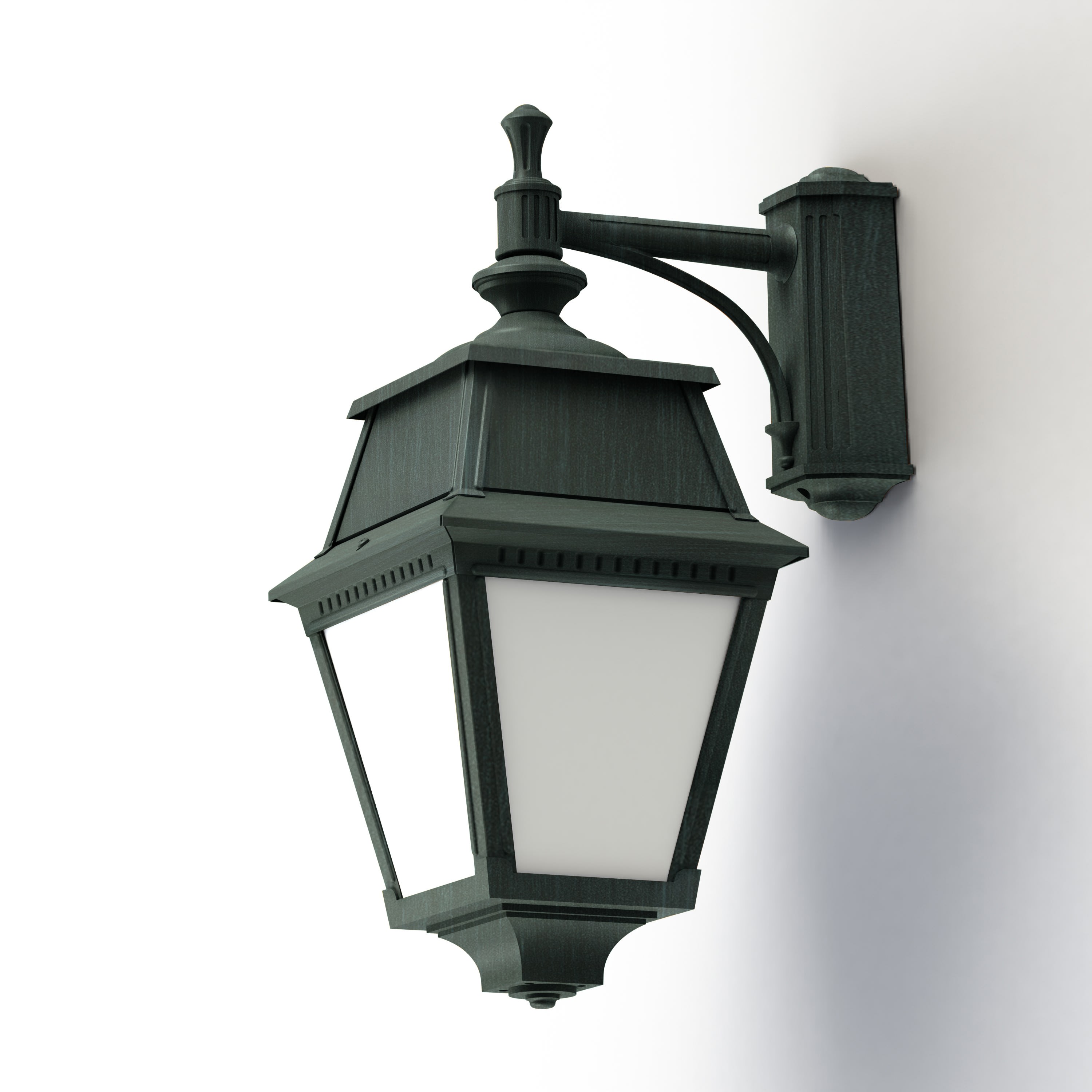 Applique descendante AVENUE 2 en aluminium, LED 13W 2700°K, IP44, classe 1, diffuseurs méthacrylate opale. Finition Patine vert de gris 008. Garantie 25 ans anticorrosion sur l'aluminium
