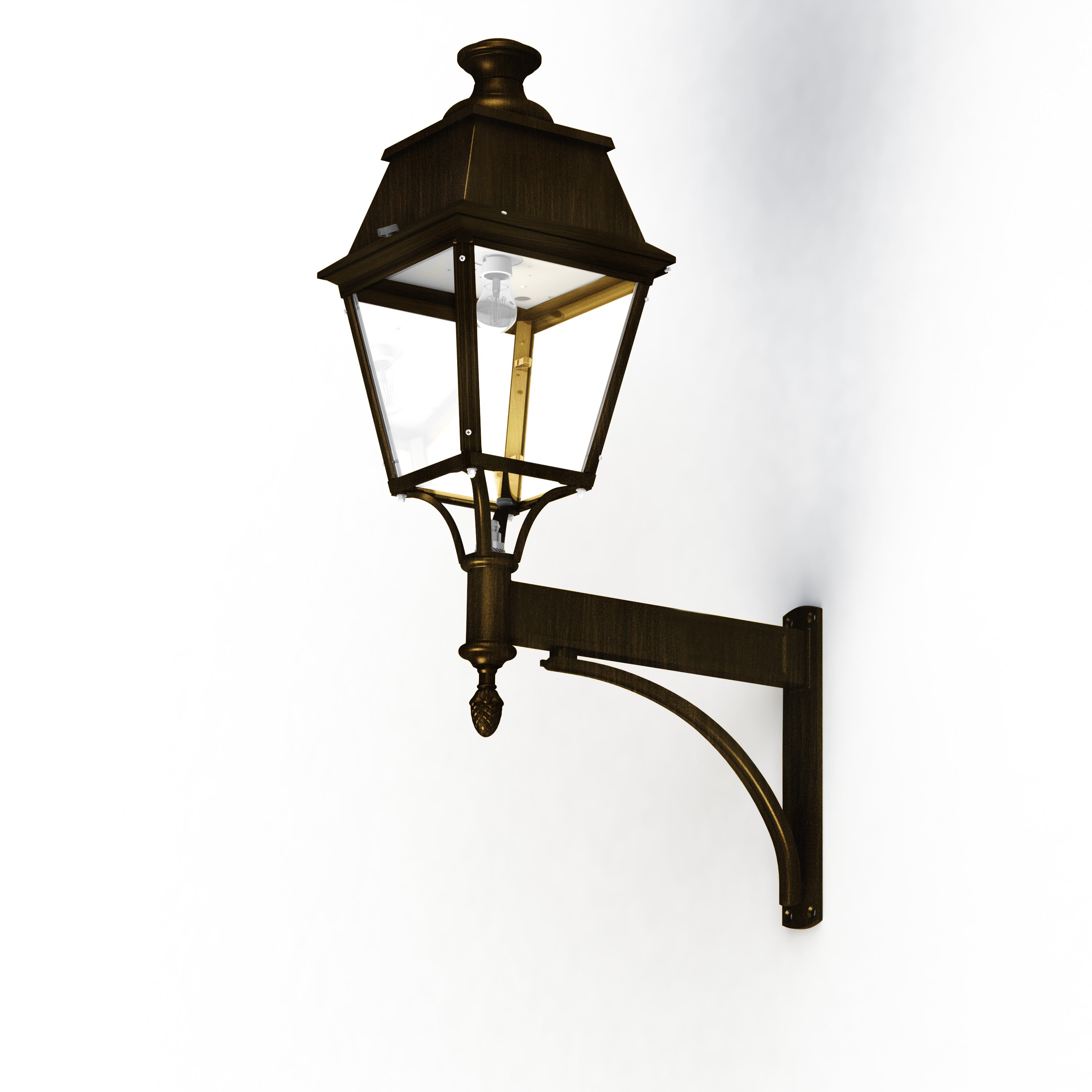 Applique montante AVENUE 4 en aluminium, E27, IP44, classe 1, diffuseur méthacrylate clair. Finition Patine dorée 009. Garantie 25 ans anticorrosion sur l'aluminium