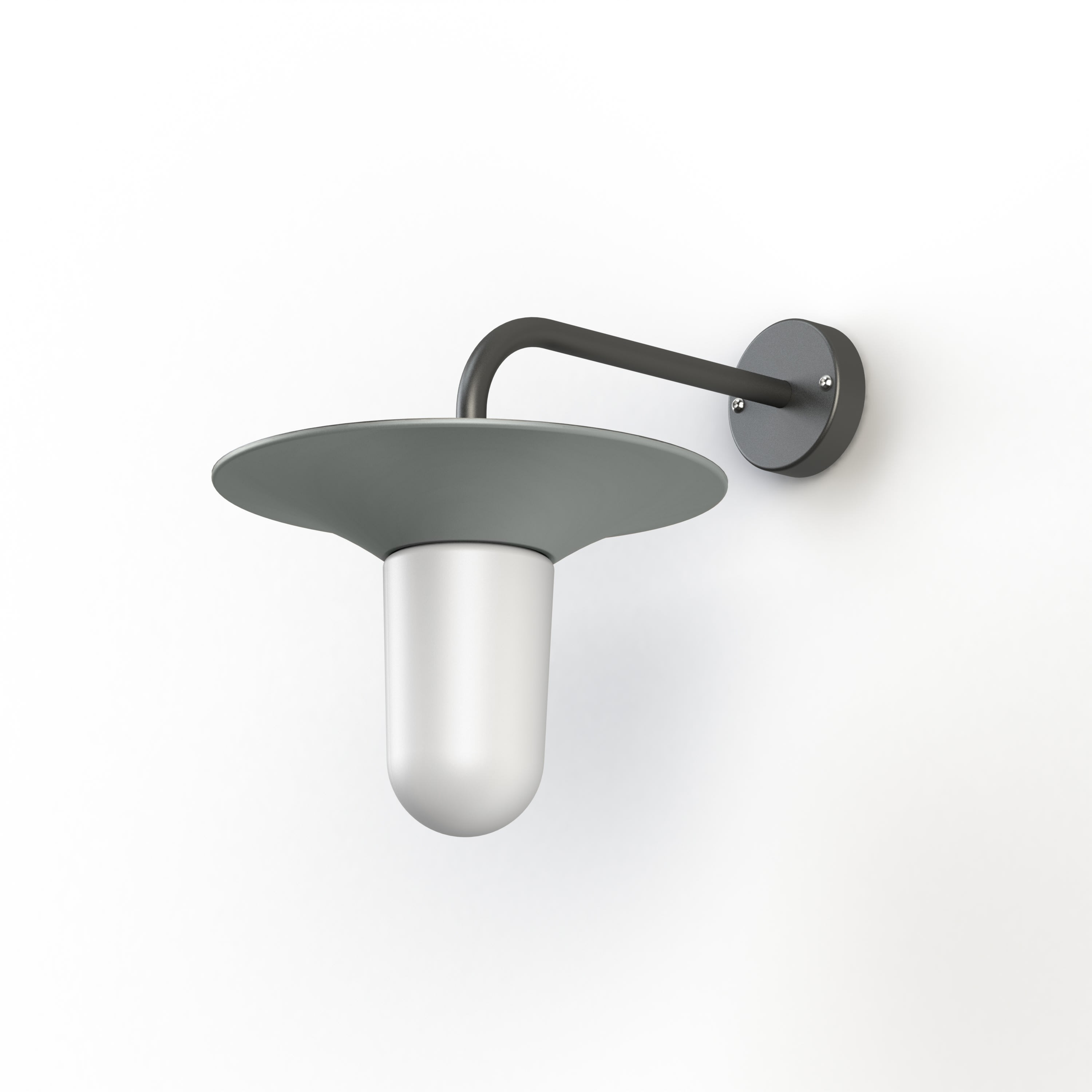 Applique descendante COOPER en aluminium, E27, IP65, classe 2, diffuseur verre soufflé opale. Réflecteur Teinte RAL 7044 Gris soie 105. Bras Teinte Noir velours 113. Garantie 25 ans anticorrosion sur l'aluminium