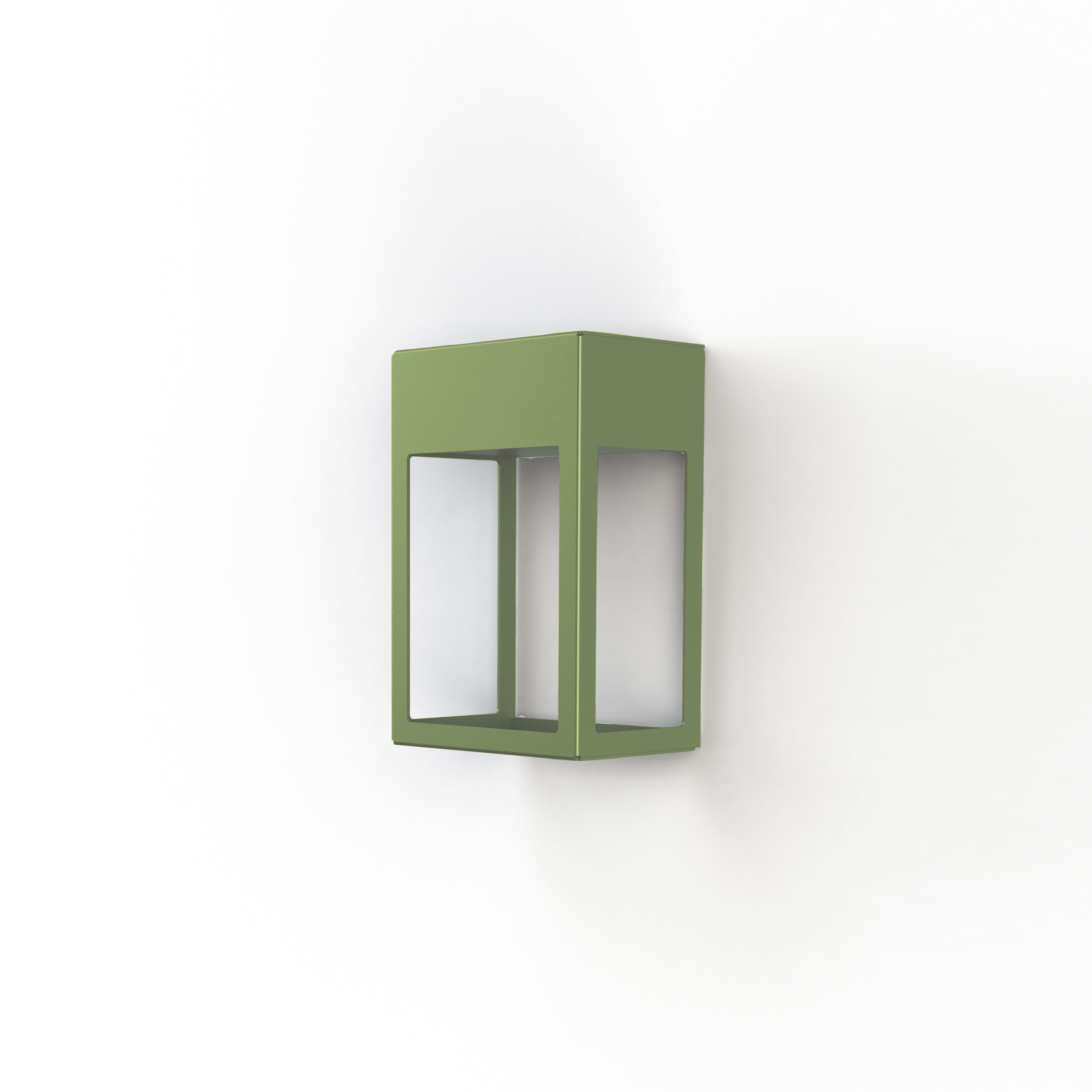 Applique HOGAR en aluminium, hauteur 400mm, classe 1, IK10, module Led IP65 intégré 35W 2700°K, dimmable 1-10 Volt, diffuseur méthacrylate satiné. Teinte RAL 6021 Vert pâle 133. Garantie 25 ans anticorrosion sur l'aluminium
