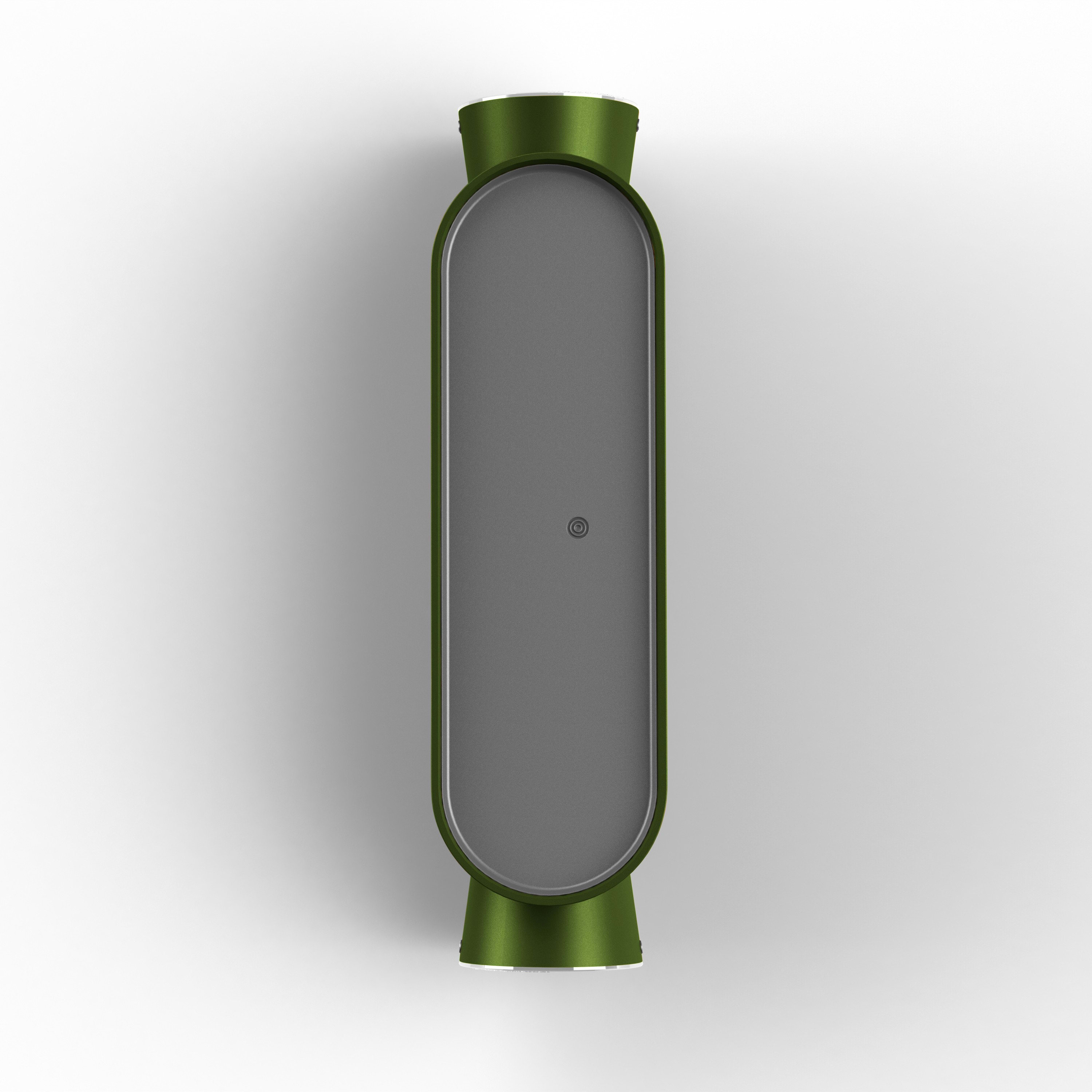 Applique IBUK en aluminium, LED 3x4,5W 3000°K, éclairage haut et bas 10°-10°, IP65, IK10, classe 2, diffuseurs polycarbonate clair. Façade noire rétroéclairée. Teinte RAL 6025 Vert fougère 109. Garantie 25 ans anticorrosion sur l'aluminium