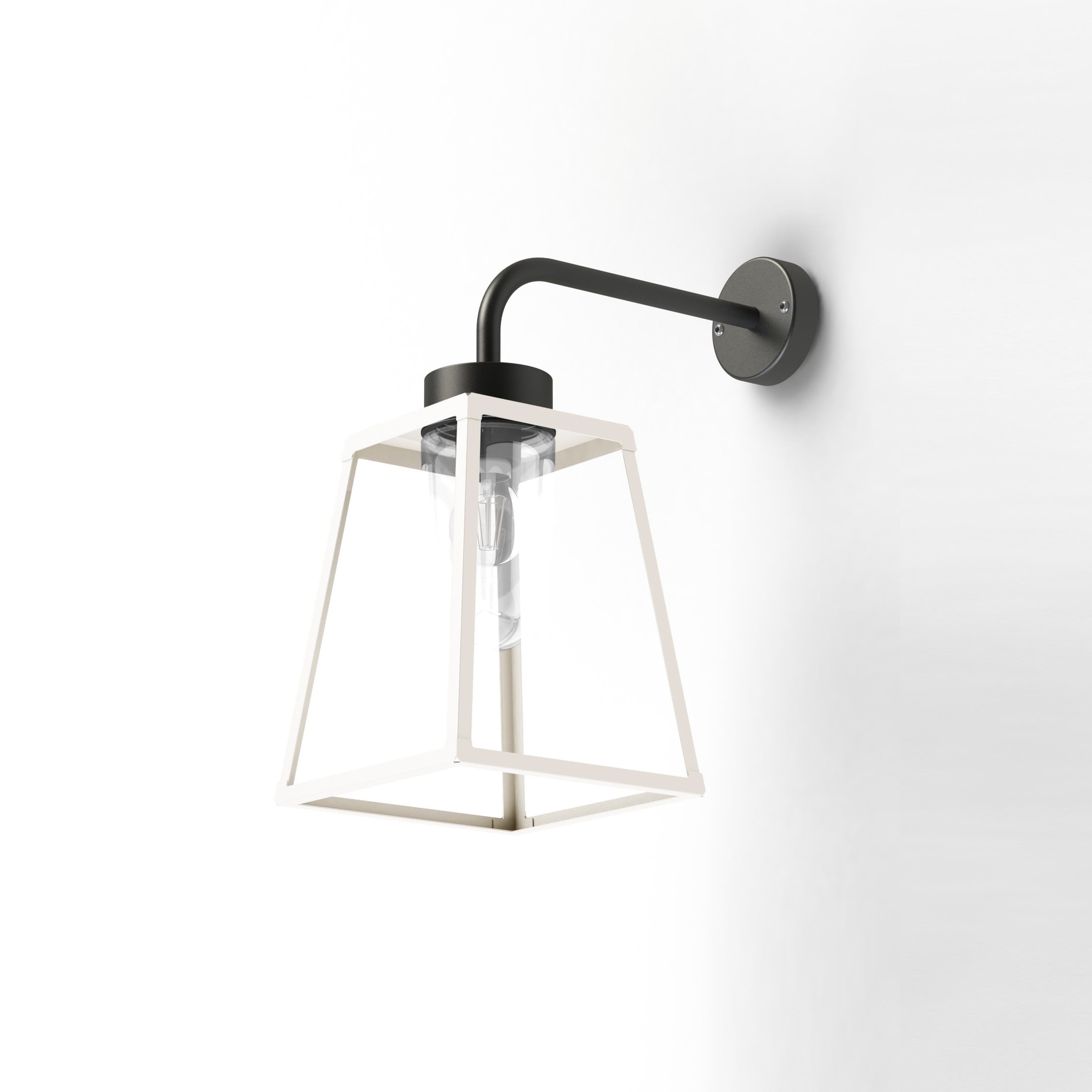 Applique descendante LAMPIOK 1 en aluminium, E27, IP65, classe 2, diffuseur verre clair. Cage : teinte Blanc 001. Potence : teinte RAL 7021 Gris noir 107. Garantie 25 ans anticorrosion sur l'aluminium