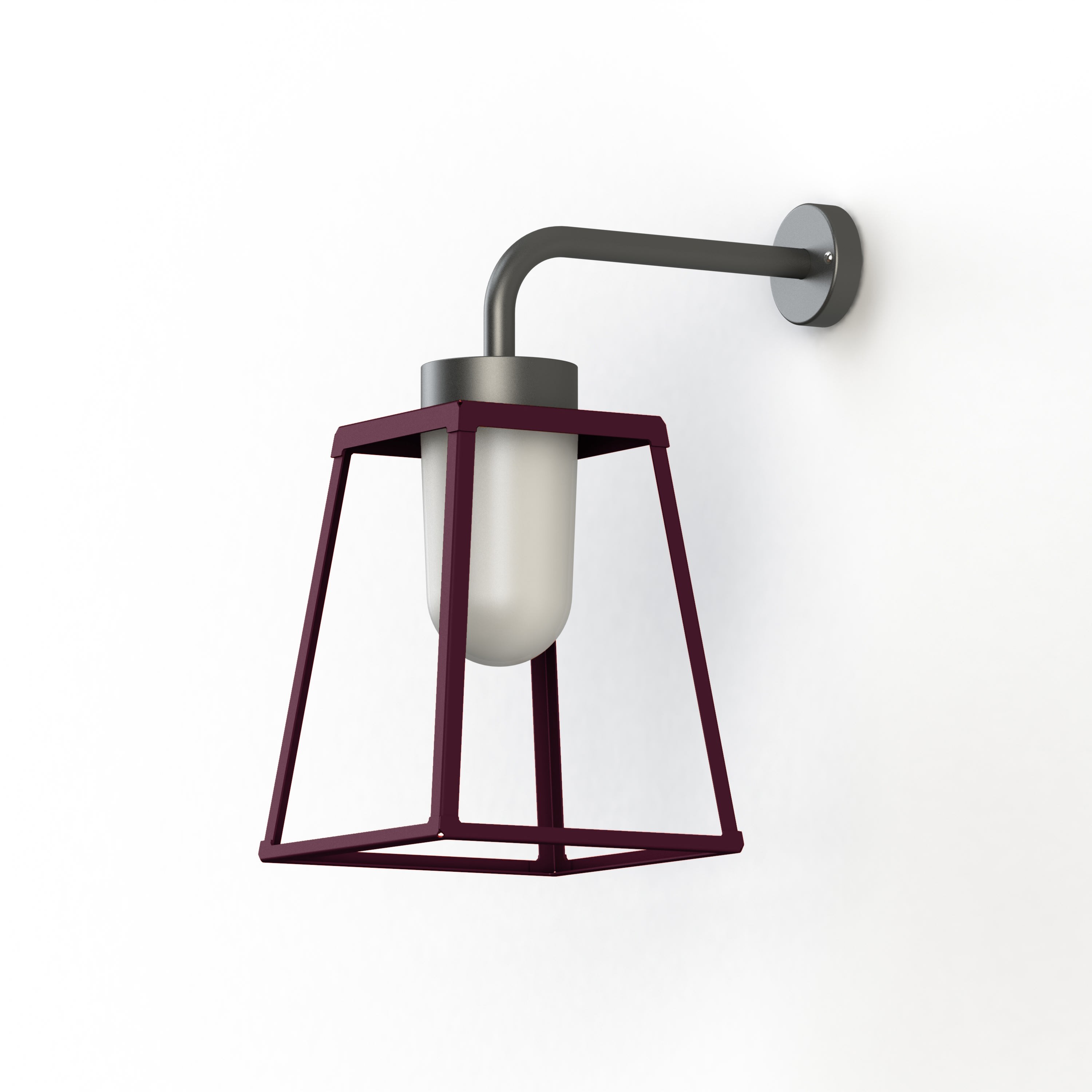 Applique LAMPIOK 2 en aluminium, E27, IP65, classe 1, diffuseur verre opale. Cage : teinte RAL 3005 Rouge vin 066, bras : teinte RAL 7021 Gris noir 107. Garantie 25 ans anticorrosion sur l'aluminium