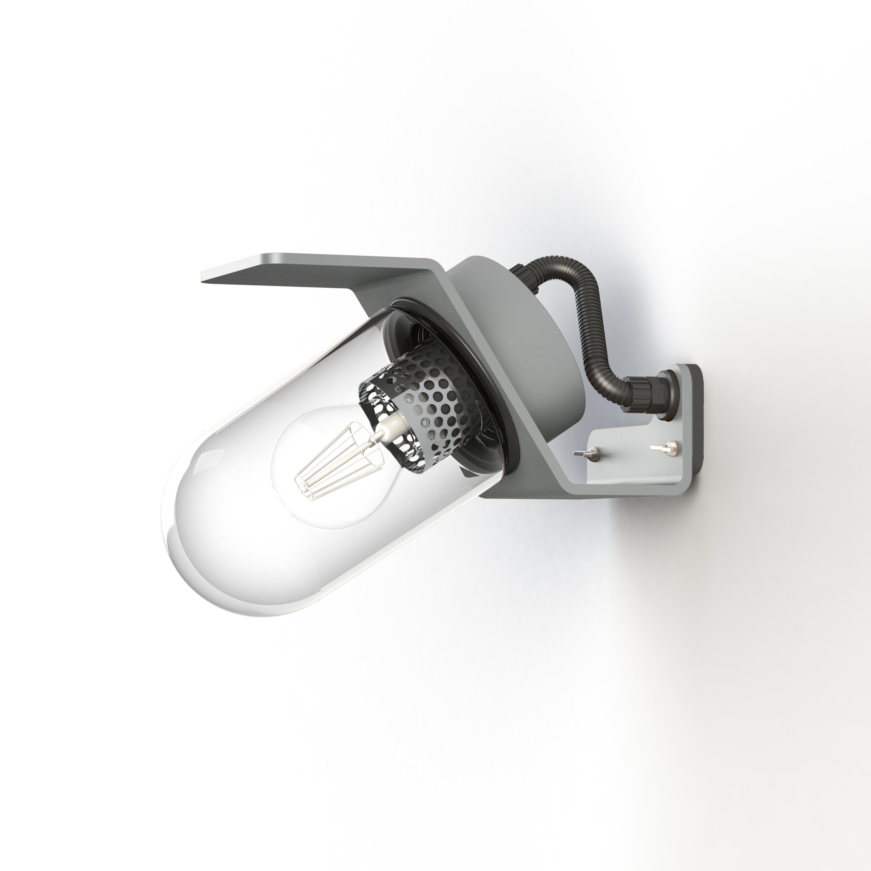 Applique SHERLOCK en aluminium, E27, IP65, class 3, diffuseur verre clair. Teinte RAL 7044 Gris soie 105. Garantie 25 ans anticorrosion sur l'aluminium