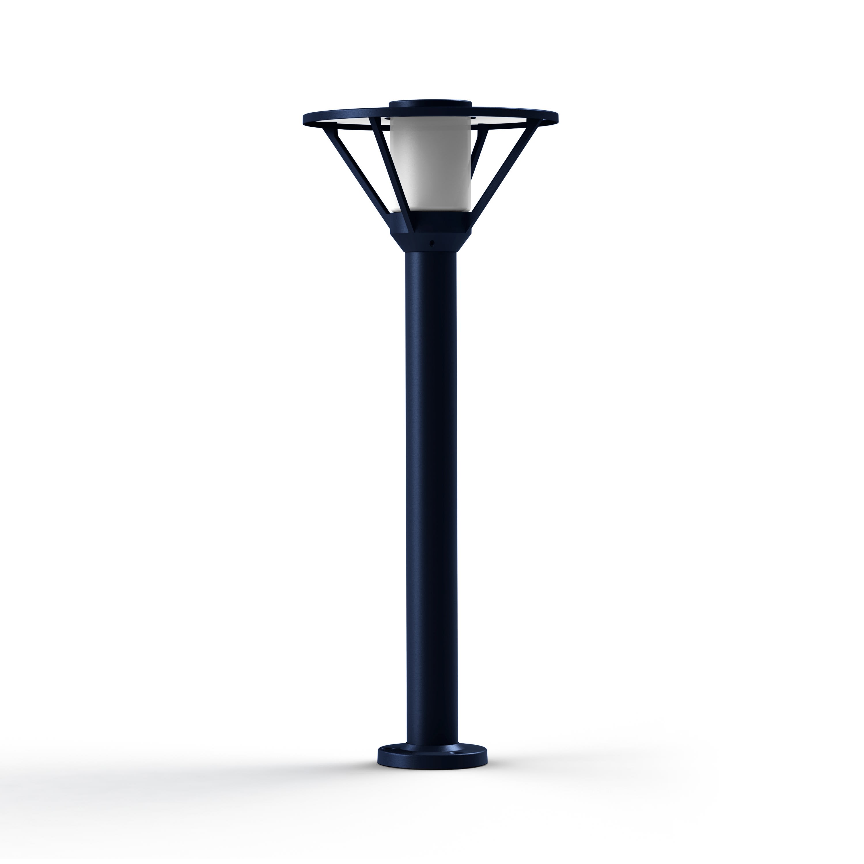 Borne BERMUDE, IP44, classe 1, hauteur 820mm, en aluminium, E27, réflecteur aluminium blanc, diffuseur verre dépoli. Teinte RAL 5011 Bleu acier 065. Garantie 25 ans anticorrosion sur l'aluminium