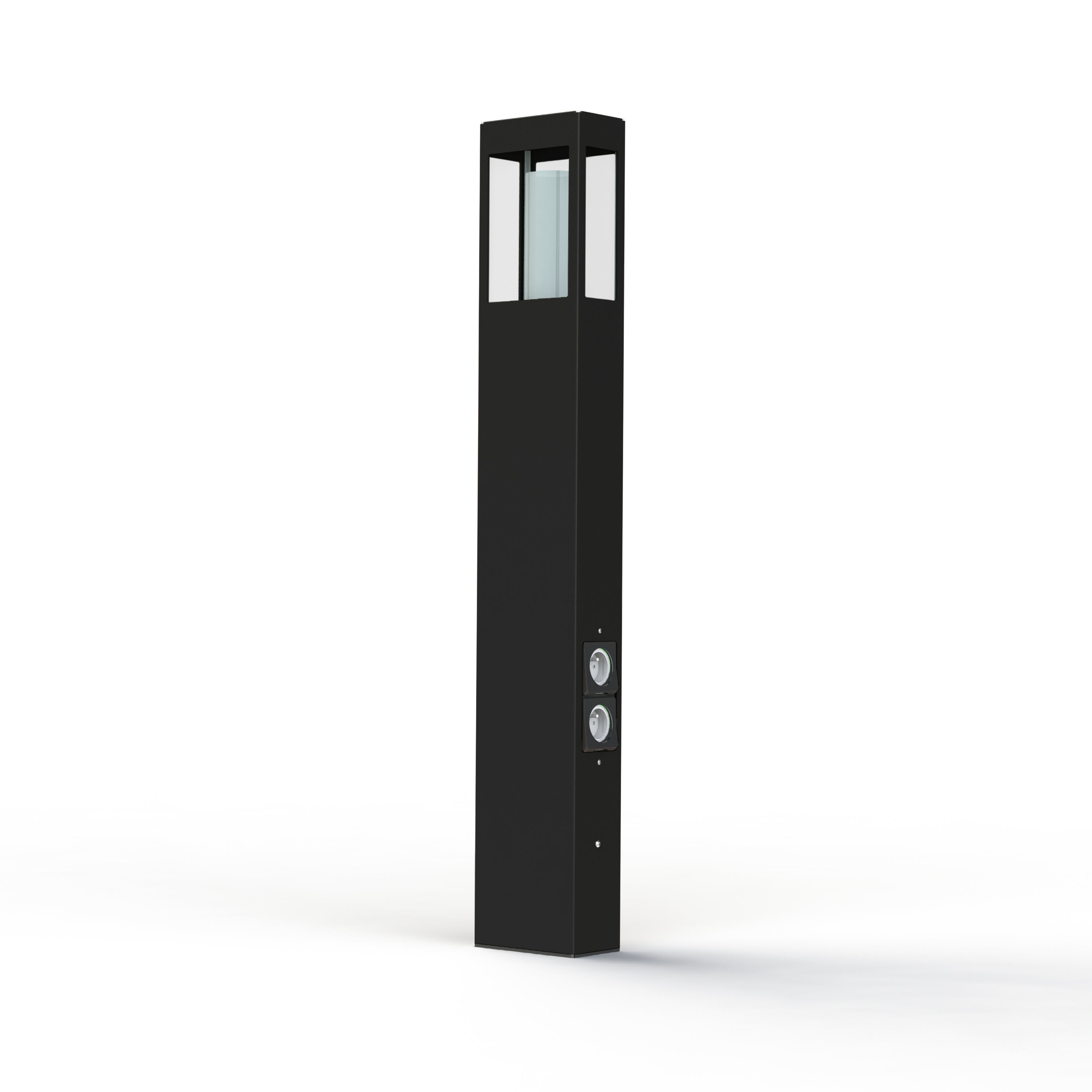 Borne BRICK² hauteur 1100mm avec 2 prises FR, en aluminium, E27, IP44, classe 2, vitrage verre clair, diffuseur satiné. Teinte Gris anthracite 006. Garantie 25 ans anticorrosion sur l'aluminium