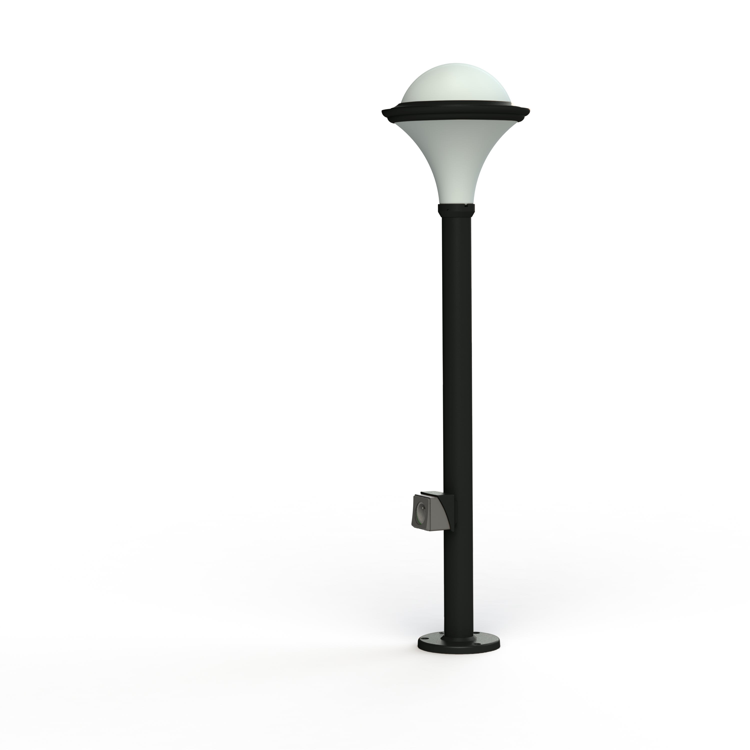 Borne avec prise DALLAS en aluminium, E27, IP44, IK10, classe 1, hauteur 1266mm, diffuseur polycarbonate opale. Teinte Gris anthracite 006. Garantie 25 ans anticorrosion sur l'aluminium