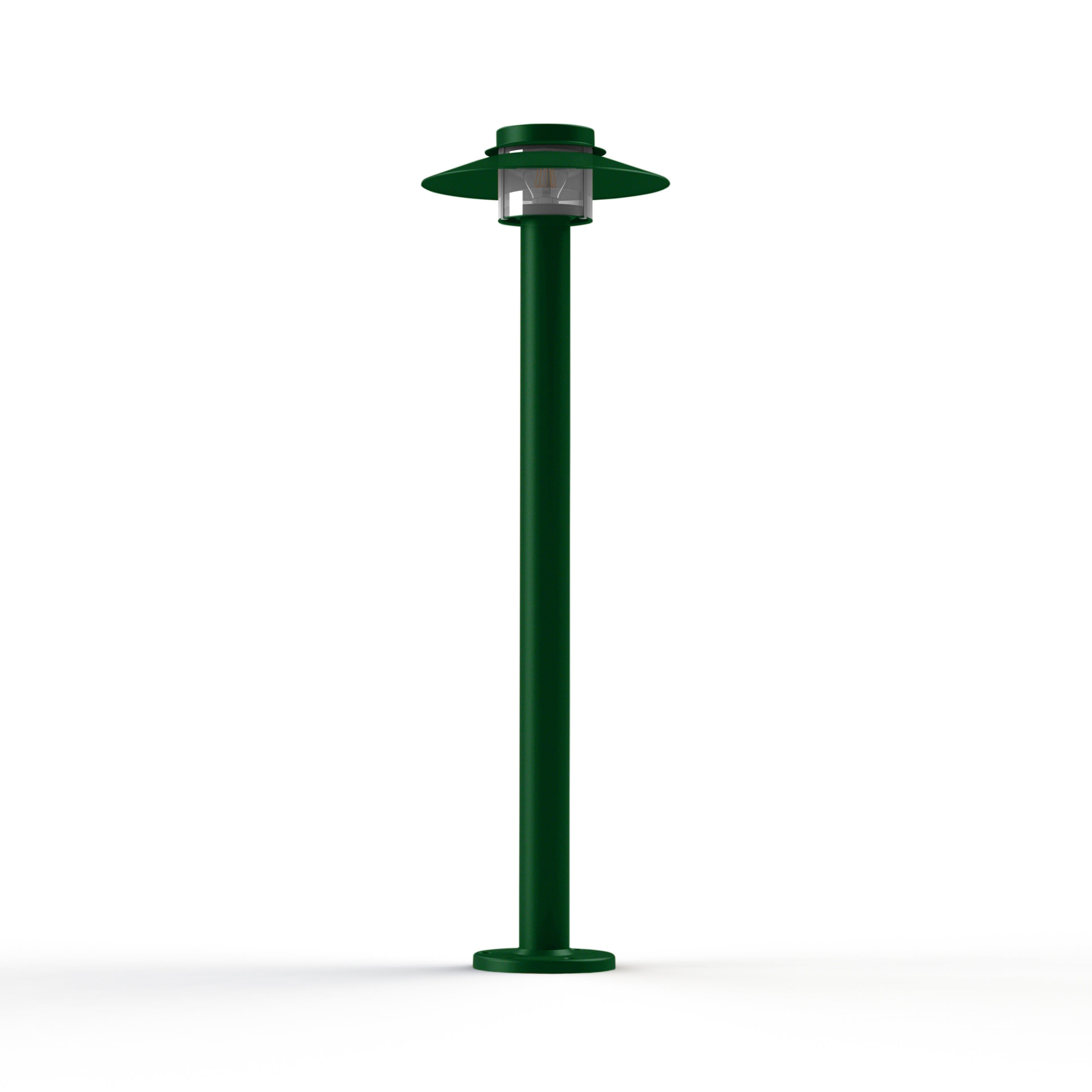 Borne KERLOUAN en aluminium, hauteur 1060mm, E27, IP44, classe 1, diffuseur polycarbonate clair. Teinte RAL 6009 Vert sapin 067. Garantie 25 ans anticorrosion sur l'aluminium