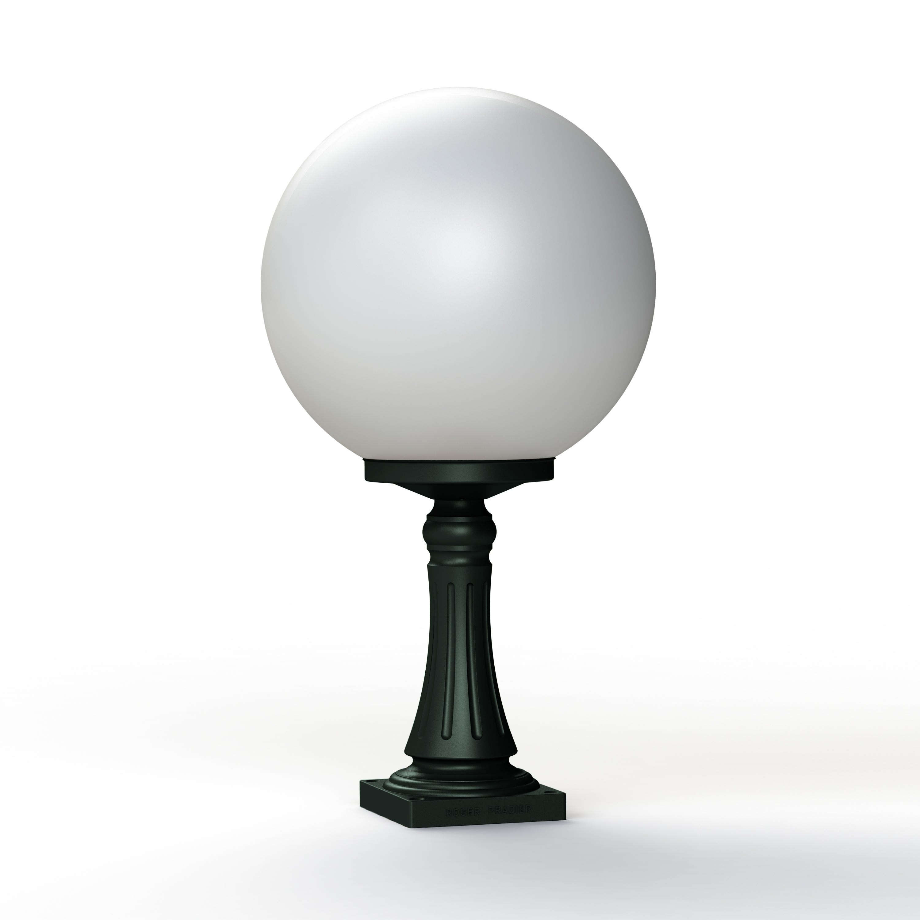 Borne MOON, en aluminium, hauteur 568mm, E27, IP44, IK08, classe 1, globe Ø 300 méthacrylate opale. Teinte Gris ardoise 059. Garantie 25 ans anticorrosion sur l'aluminium