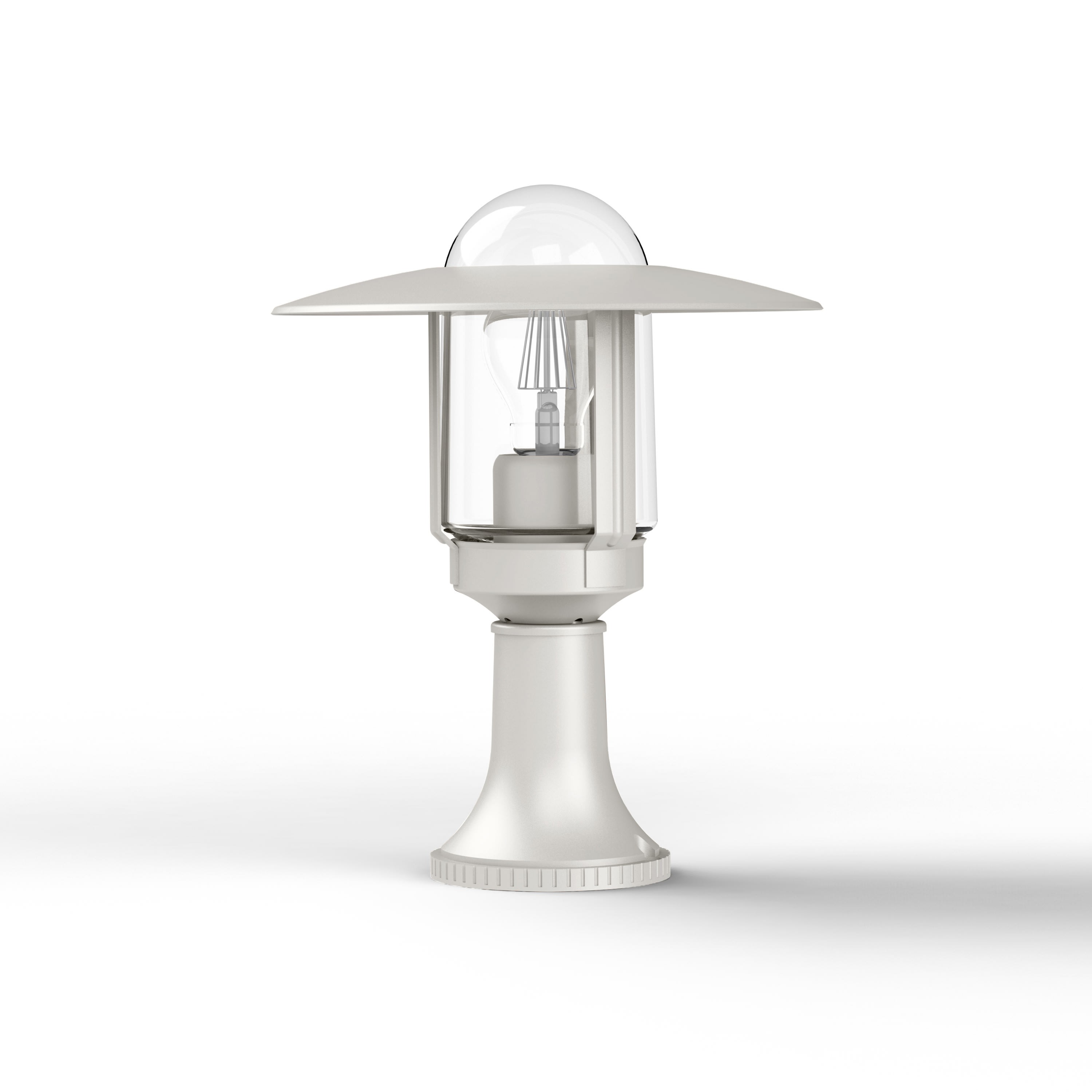 Borne NEWPARK en aluminium, hauteur 316mm, E27, IP44, classe 1, diffuseur verre clair. Teinte Blanc 001. Garantie 25 ans anticorrosion sur l'aluminium