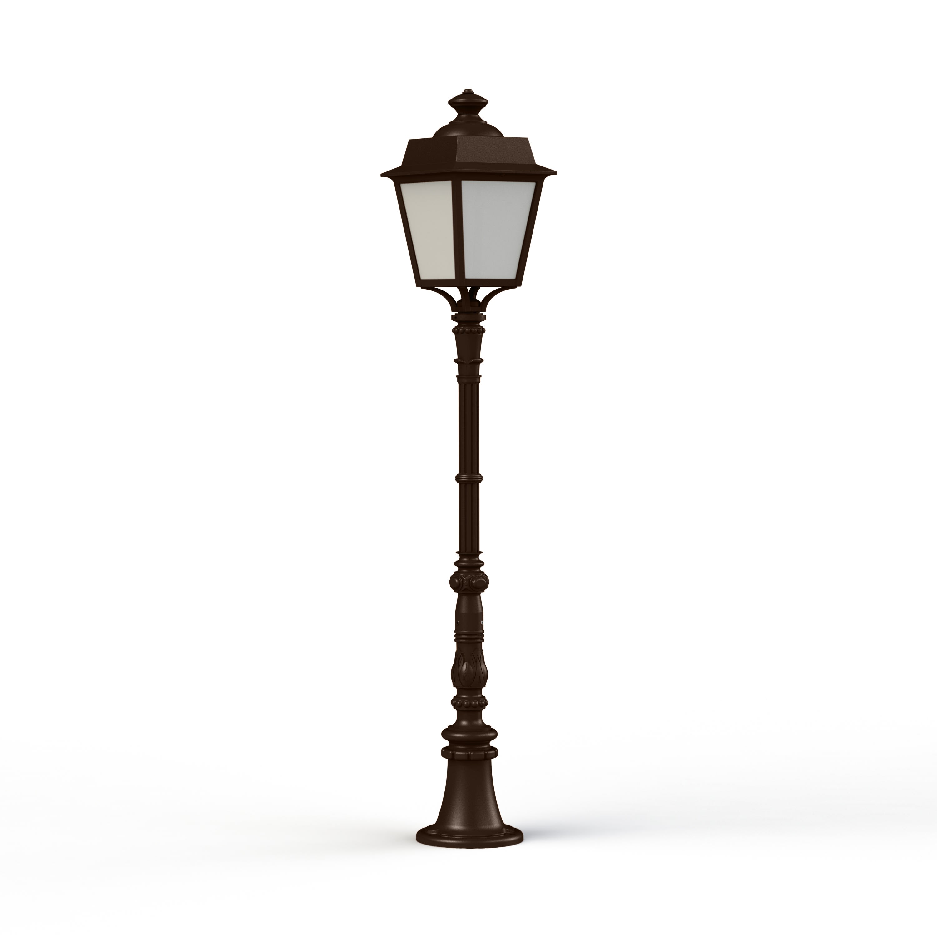 Borne PLACE DES VOSGES EVOLUTION en aluminium, hauteur 1310mm, E27, IP65, classe 1, bloc diffuseur méthacrylate opale. Teinte Rouille 046. Garantie 25 ans anticorrosion sur l'aluminium