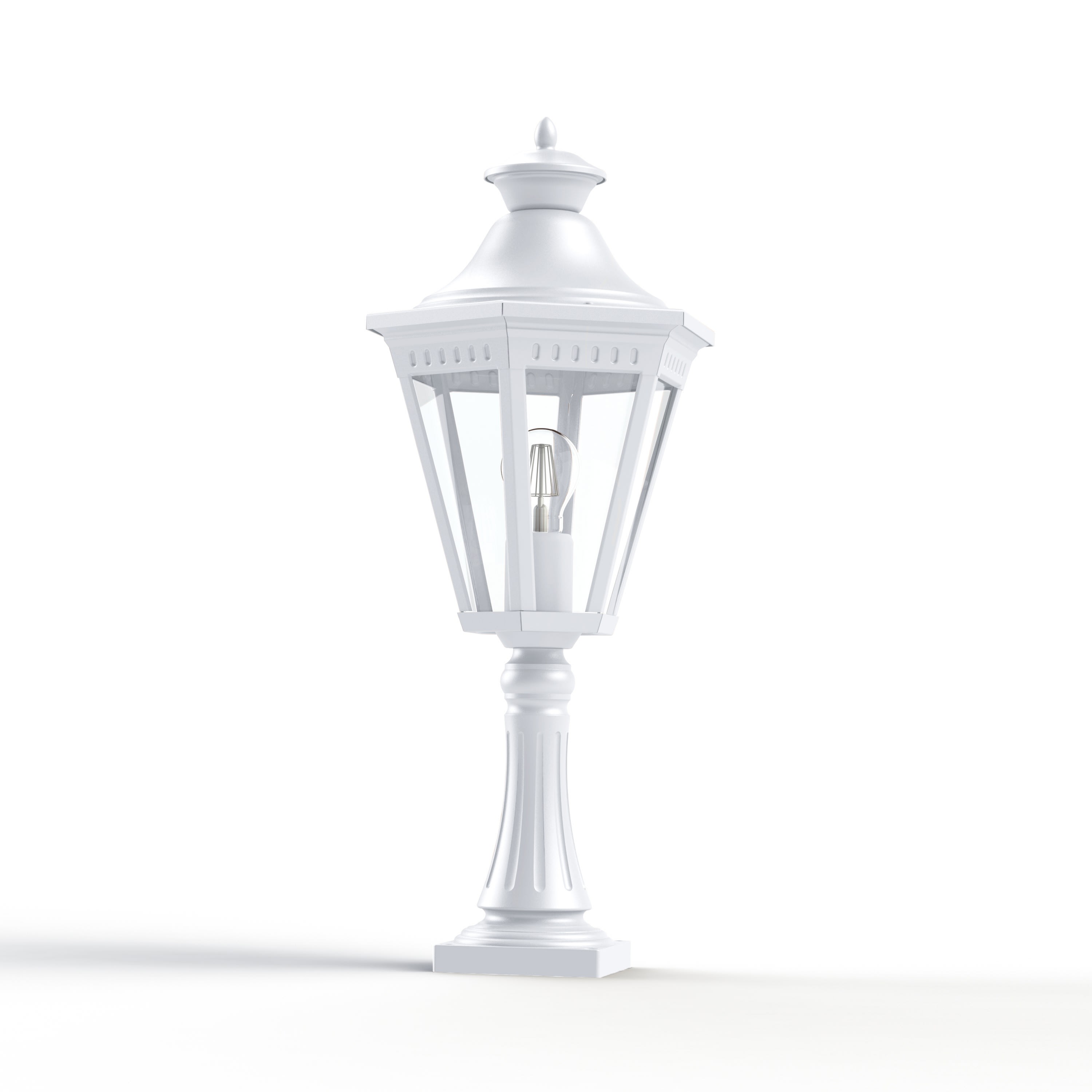 Borne VICTORIA, hauteur 645mm, en aluminium, E27, IP44, classe 1, diffuseurs polycarbonate clair. Teinte Blanc 001. Garantie 25 ans anticorrosion sur l'aluminium